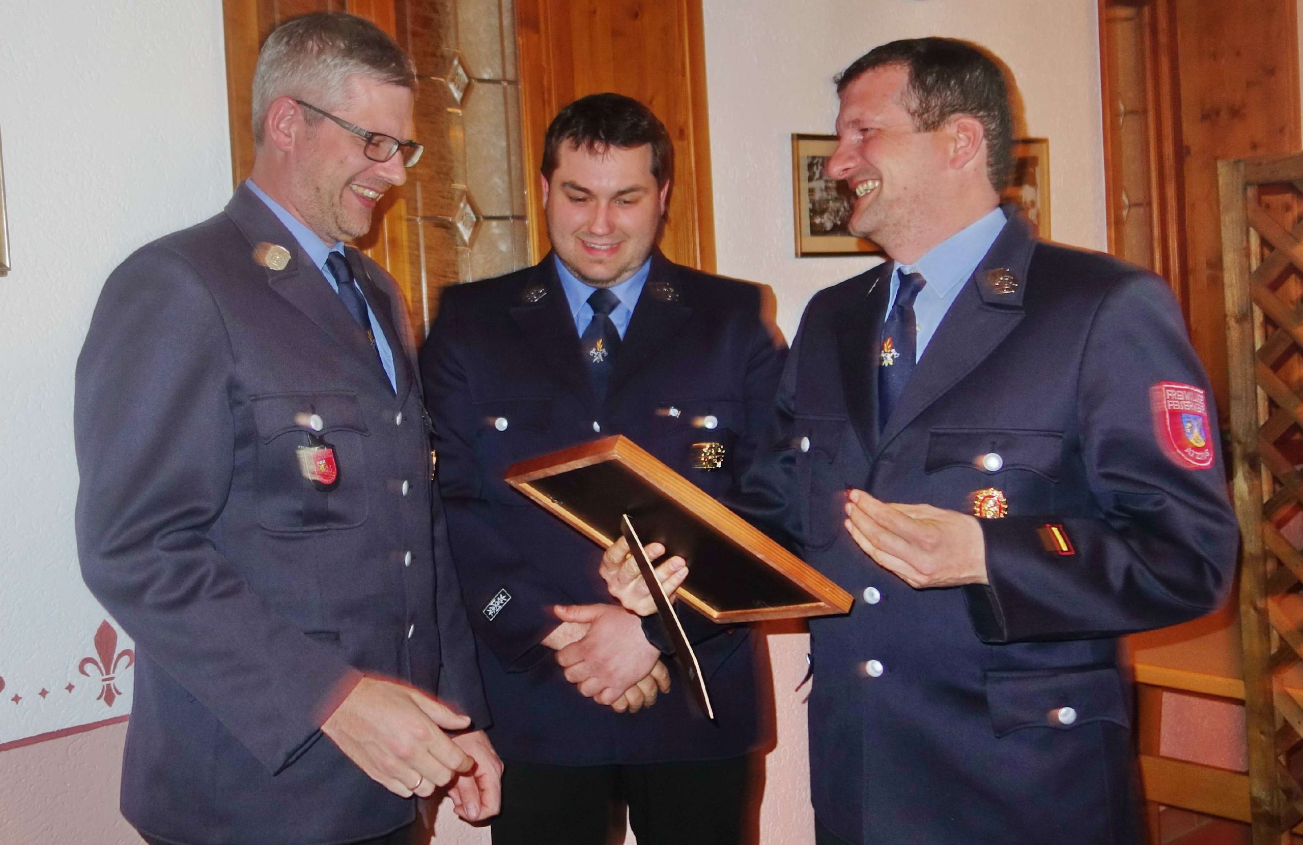 - Hans-Peter Riepertinger (li.) bei der Ernennung zum Oberlöschmeister durch die Kommandanten Paul Huber junior (re.) und Bernhard Summerer