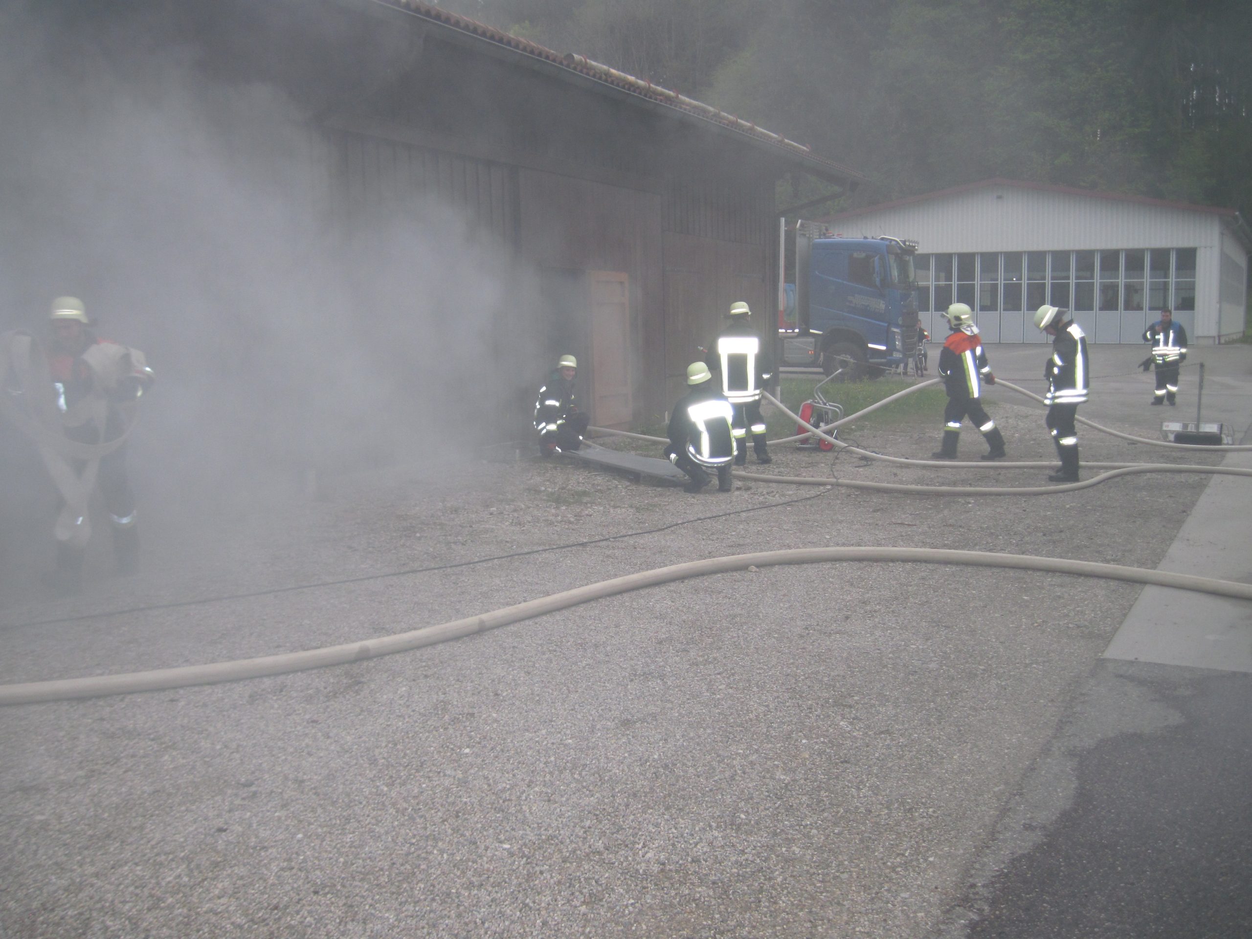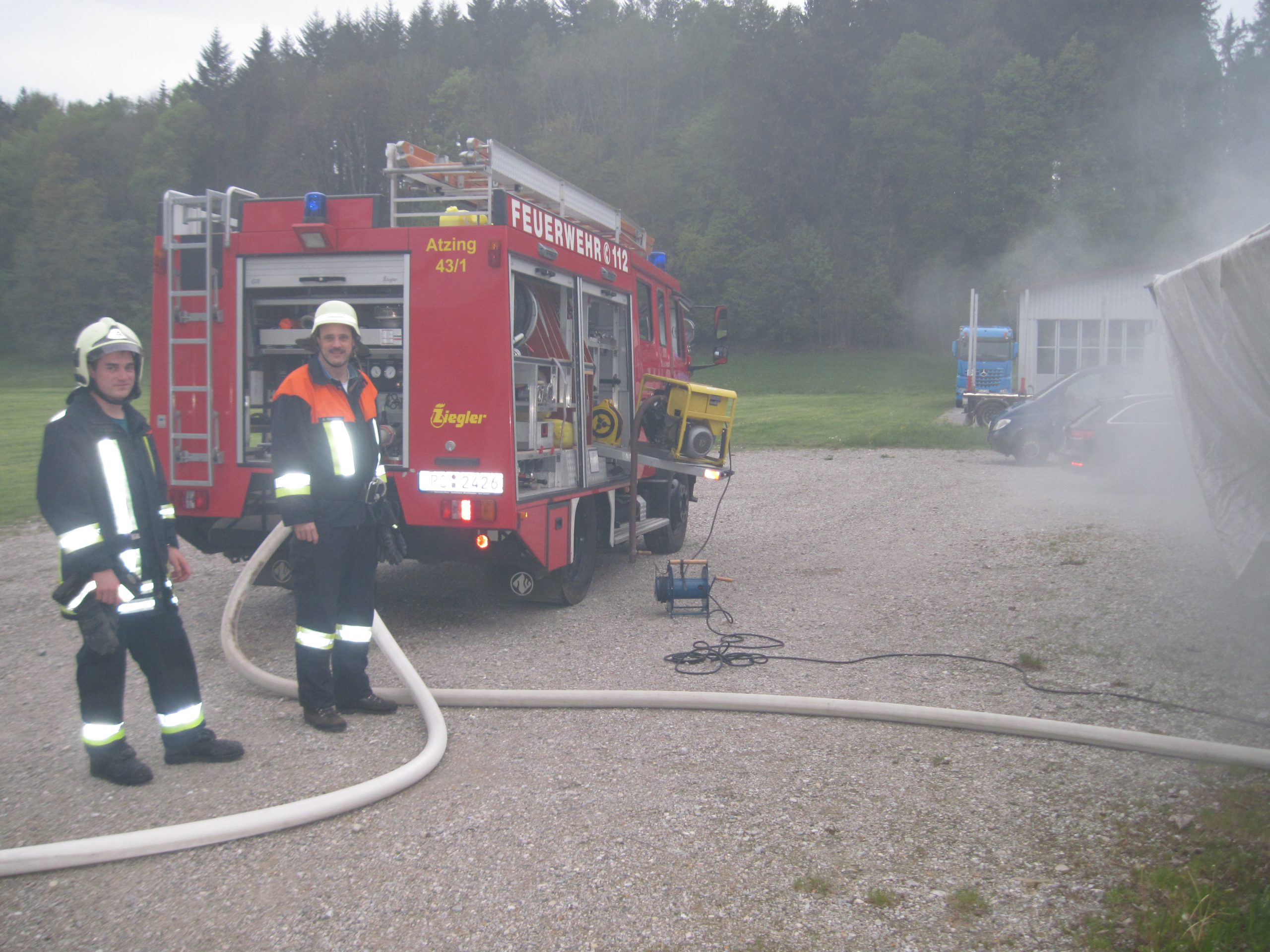 Der Brand des Vereinsstadels der Atzinger Ortsvereine unmittelbar gegenüber dem Atzinger Feuerwehr- und Gemeindehaus war ein angenommenes Szenario im Rahmen einer Sonder-Übung der Feuerwehr Atzing. Ehe es zum „Einsatz“ ging, wurde im Rahmen der Modularen Trupp Ausbildung vorab theoretisch zum Thema „Einheiten im Löscheinsatz“ unterrichtet. Bei der Übung selbst waren dann zwei Atemschutzträgertruppe im Einsatz, um drei vermisste Personen ausfindig zu machen und zu retten.
