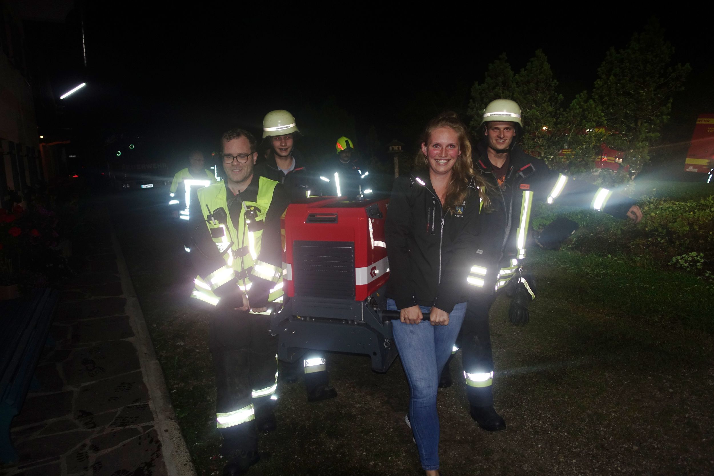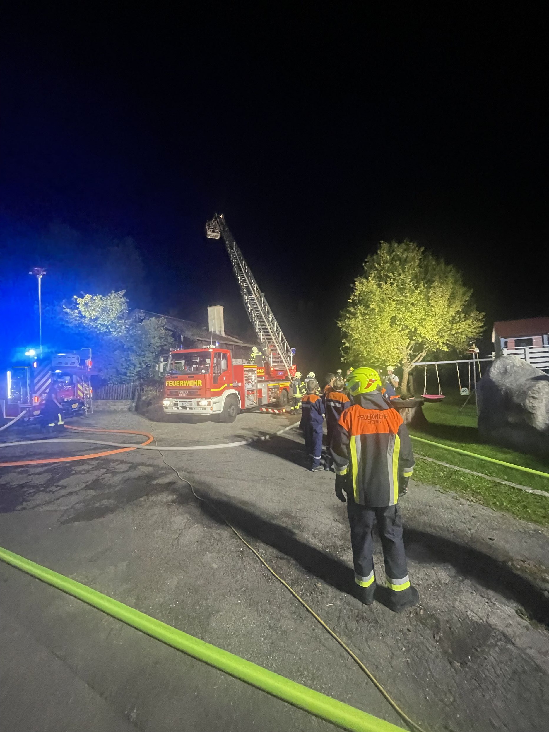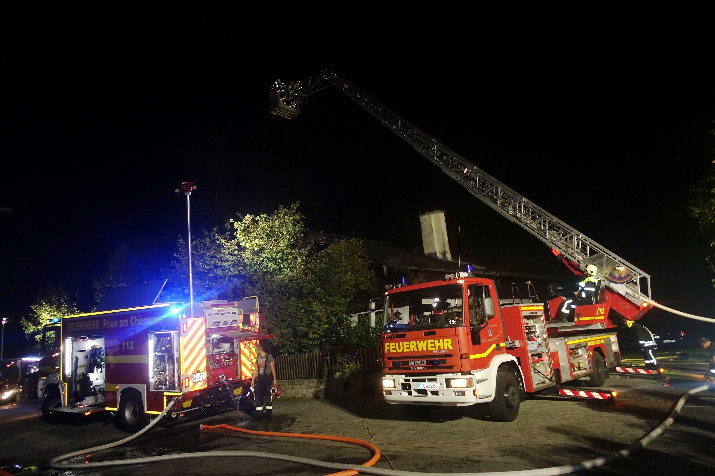 Insgesamt beteiligten sich aus den Feuerwehren von Atzing, Prien und Wildenwart 65 weibliche und männliche Einsatzkräfte mit acht Fahrzeugen inklusive einer großen Drehleiter. Angenommen wurde ein Wohnhaus-Brand, aus dem Gebäude mussten mehrere Personen als Verletzte (sechs Atzinger Jugendfeuerwehr-Mitglieder und zwei Erwachsenen-Puppen) geborgen werden. Letztlich wurden sieben Verletzte durch Atemschutzträger aus dem verrauchten Gebäude gerettet. Eine Person allerdings befand sich noch auf dem Dach des Hauses und wurde mittels der Drehleiter gerettet. Das Löschwasser aus dem angrenzenden Mühlbach wurde mit zwei Tragkraftspritzen zu den Löschfahrzeugen befördert. Die gesamte Rettungsaktion, die von einer mobilen und kombinierten Einsatzzentrale gesteuert wurde, war nach gut einer Stunde beendet. Anschließend besprachen sich noch vor Ort Einsatzleiter Florian Hamberger von der Atzinger Wehr und seine Priener und Wildenwarter Kameraden über die gemachten Erfahrungen und Eindrücke. Redlich verdient war dann die wohl vorbereitete Würstl-Brotzeit im Atzinger Feuerwehrhaus, zu der Priens Bürgermeister Andreas Friedrich eingeladen hatte.