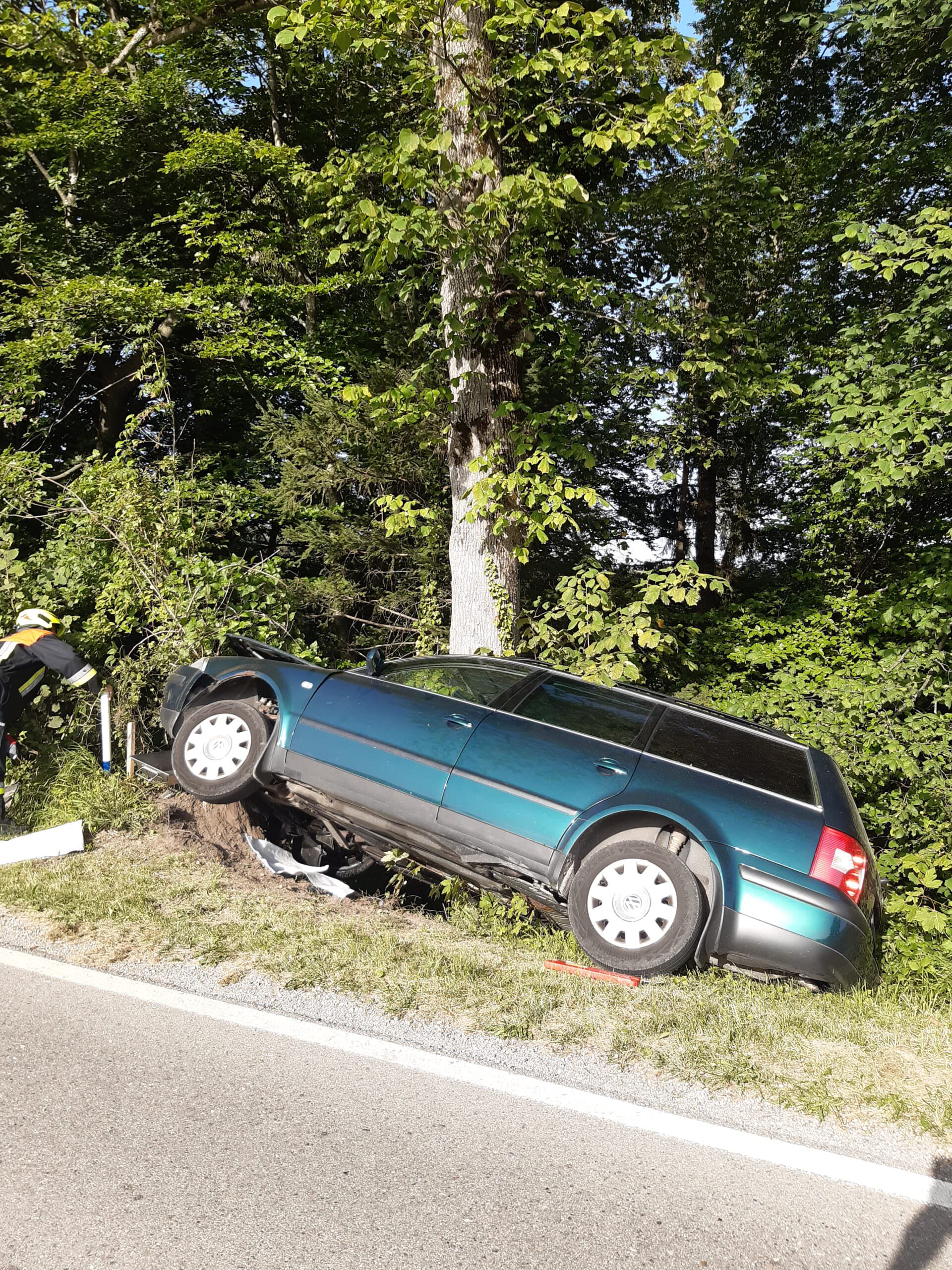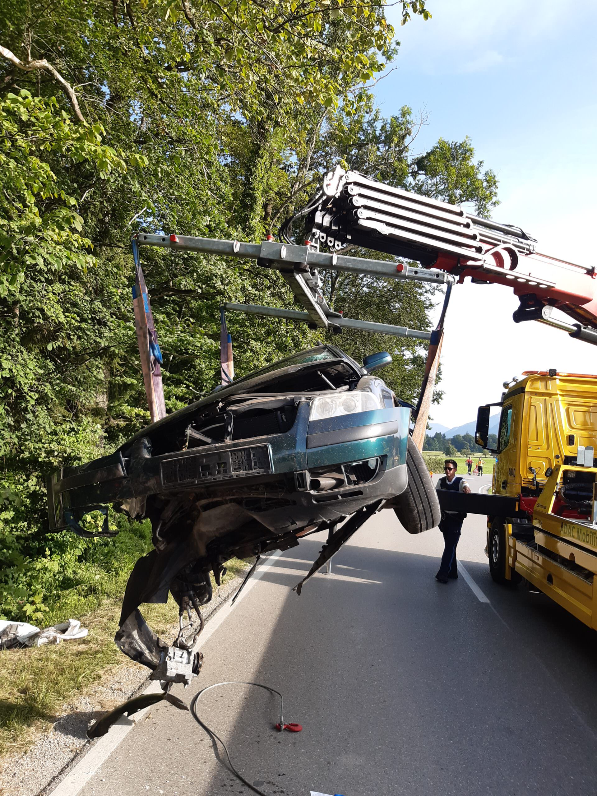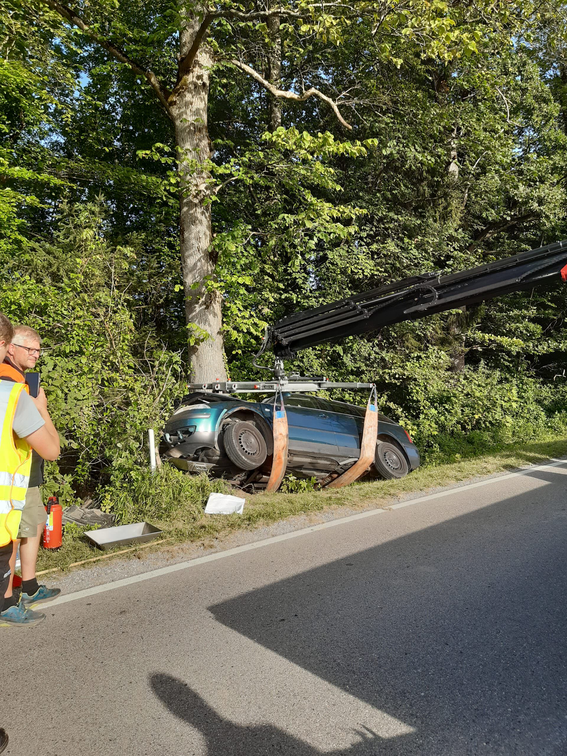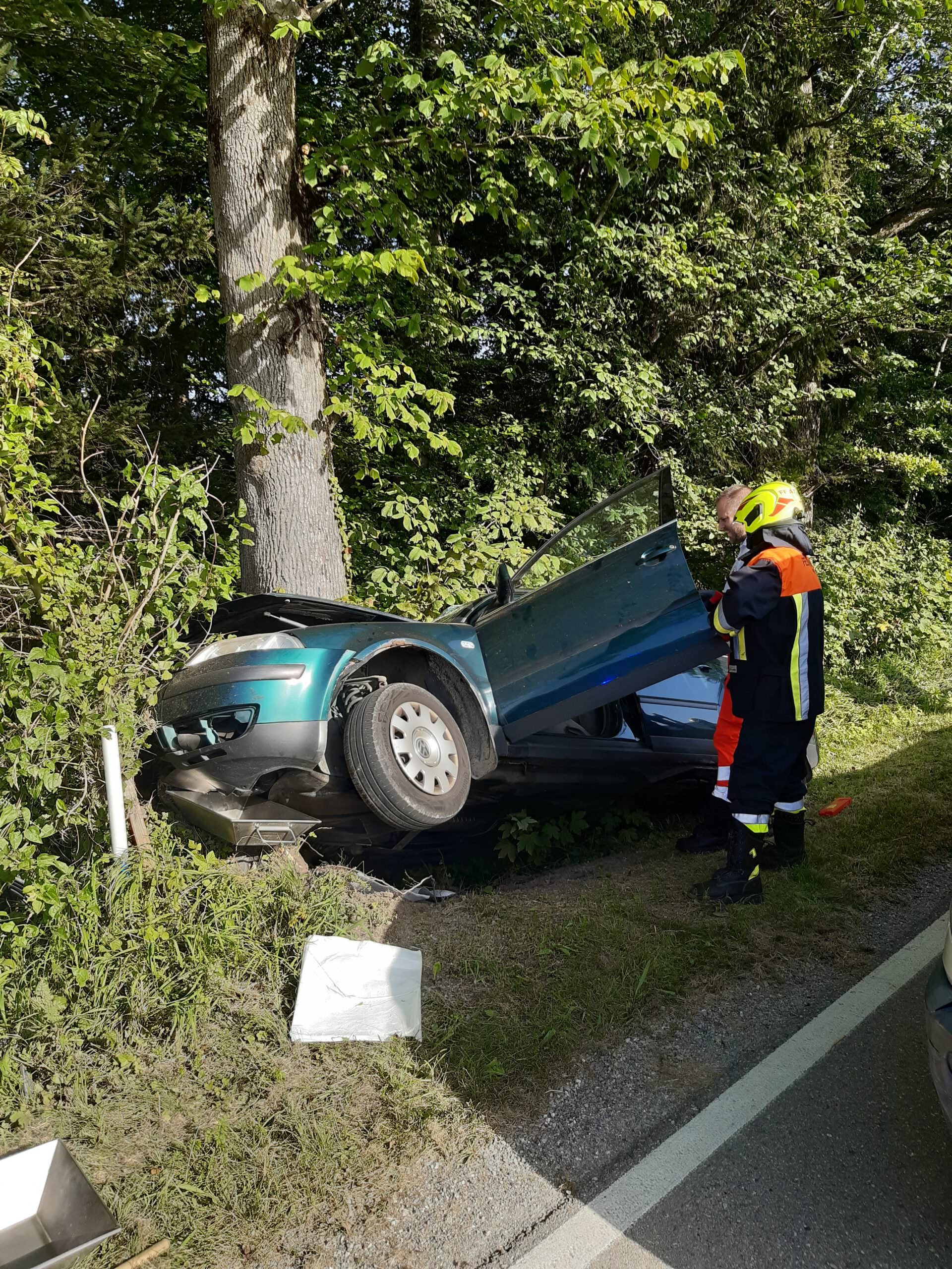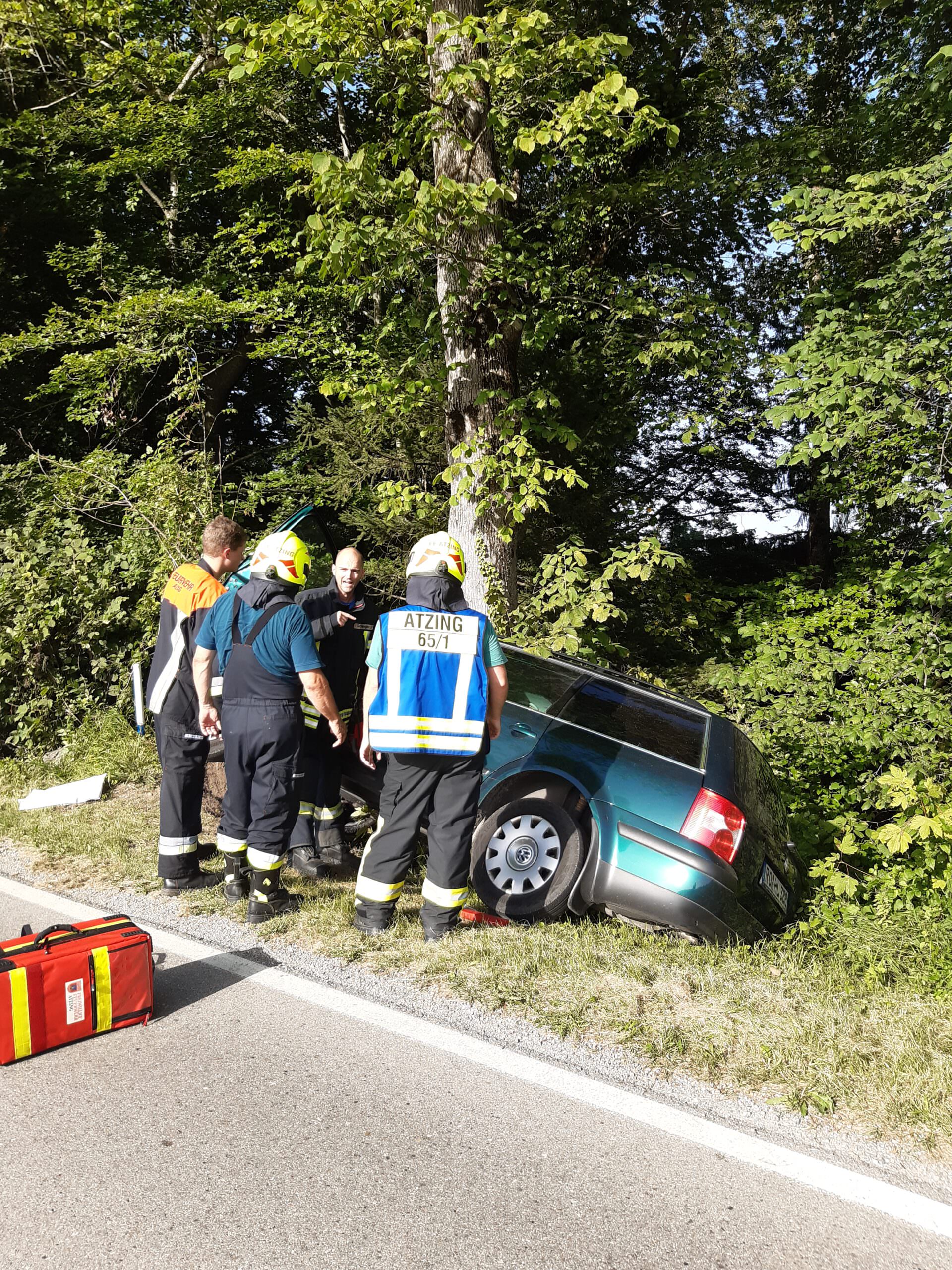 Heute wurden wir zu einem VU Pkw auf die ST 2093 zwischen Bachham und Prutdorf alarmiert. Ein Pkw kam auf einer links Kurve von der Fahrbahn ab und prallte gegen eine Baum. Zum Glück verkeilte sich das Auto mit dem Baum, ansonsten wäre das Fahrzeug ca. 50 m in Richtung dem Fluß Prien hinab gestürzt. Wir versorgten den Fahrer bis zum eintreffen des Rettunsdienstes und stellten den Brandschutz sicher. Des weiteren wurde die ST 2093 während der Bergungsarbeiten komplett gesperrt.