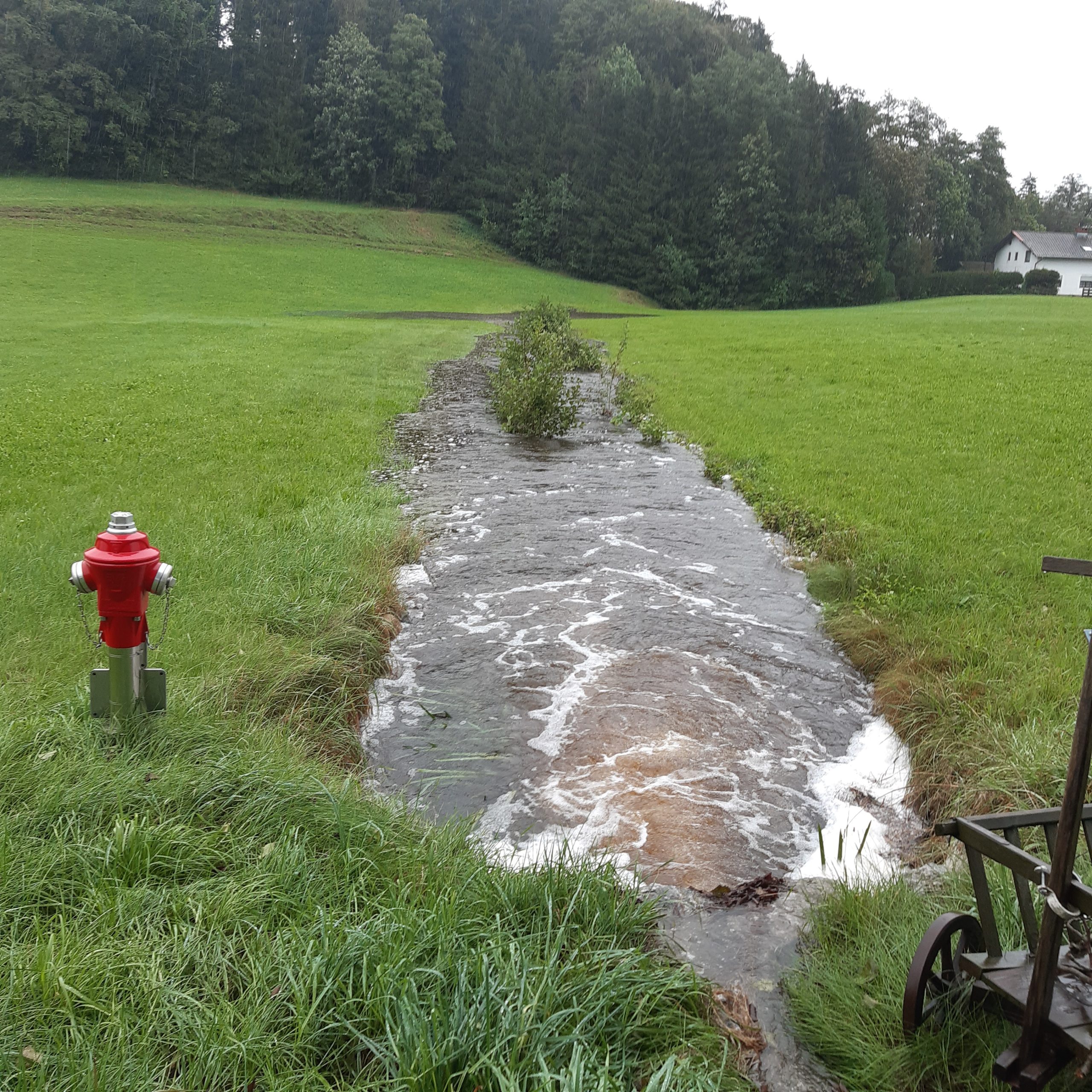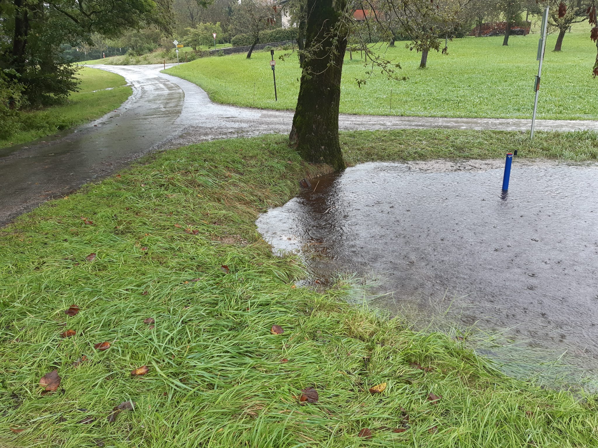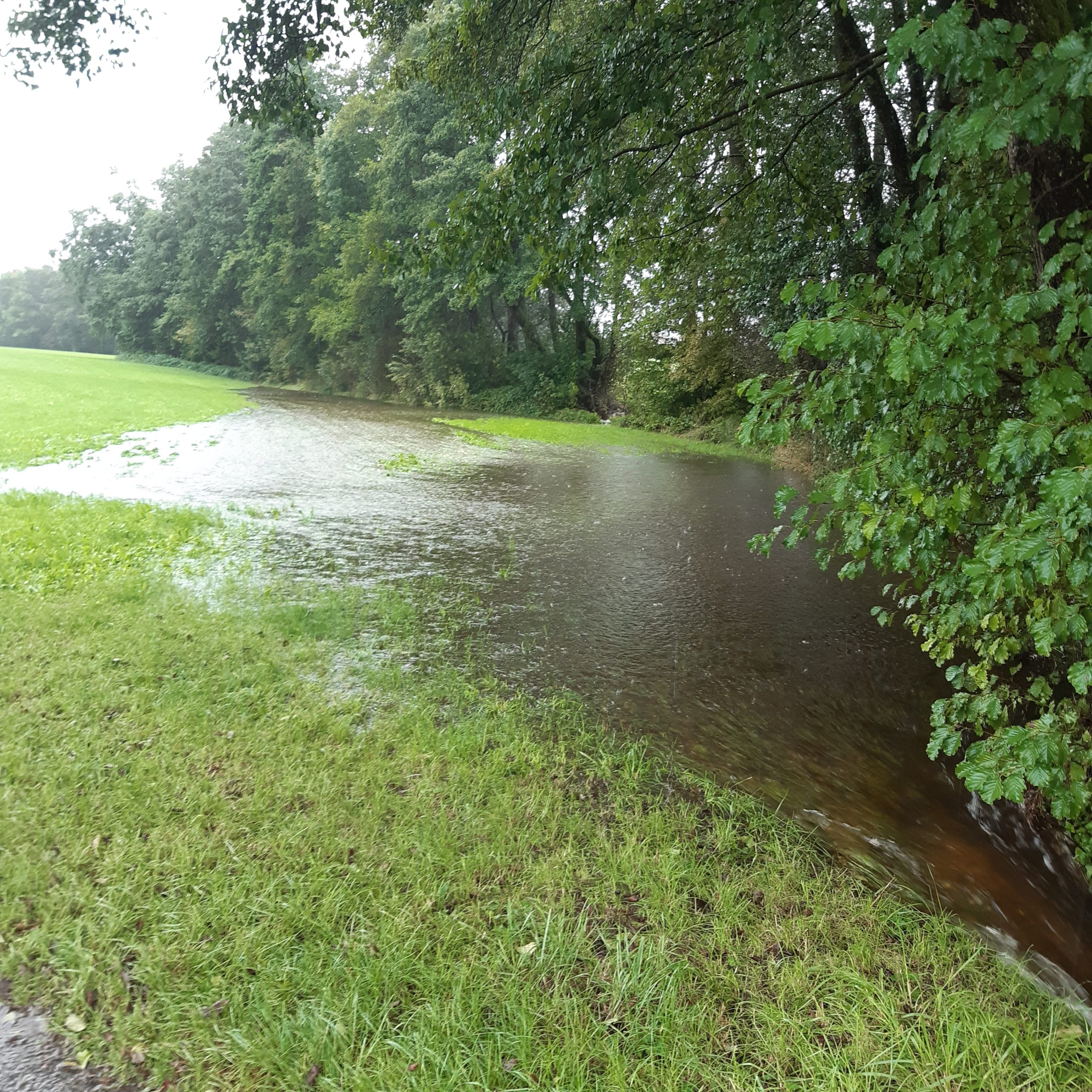 Der Stettner Bach wurde aufgrund starker Regenfälle aufgestaut.
