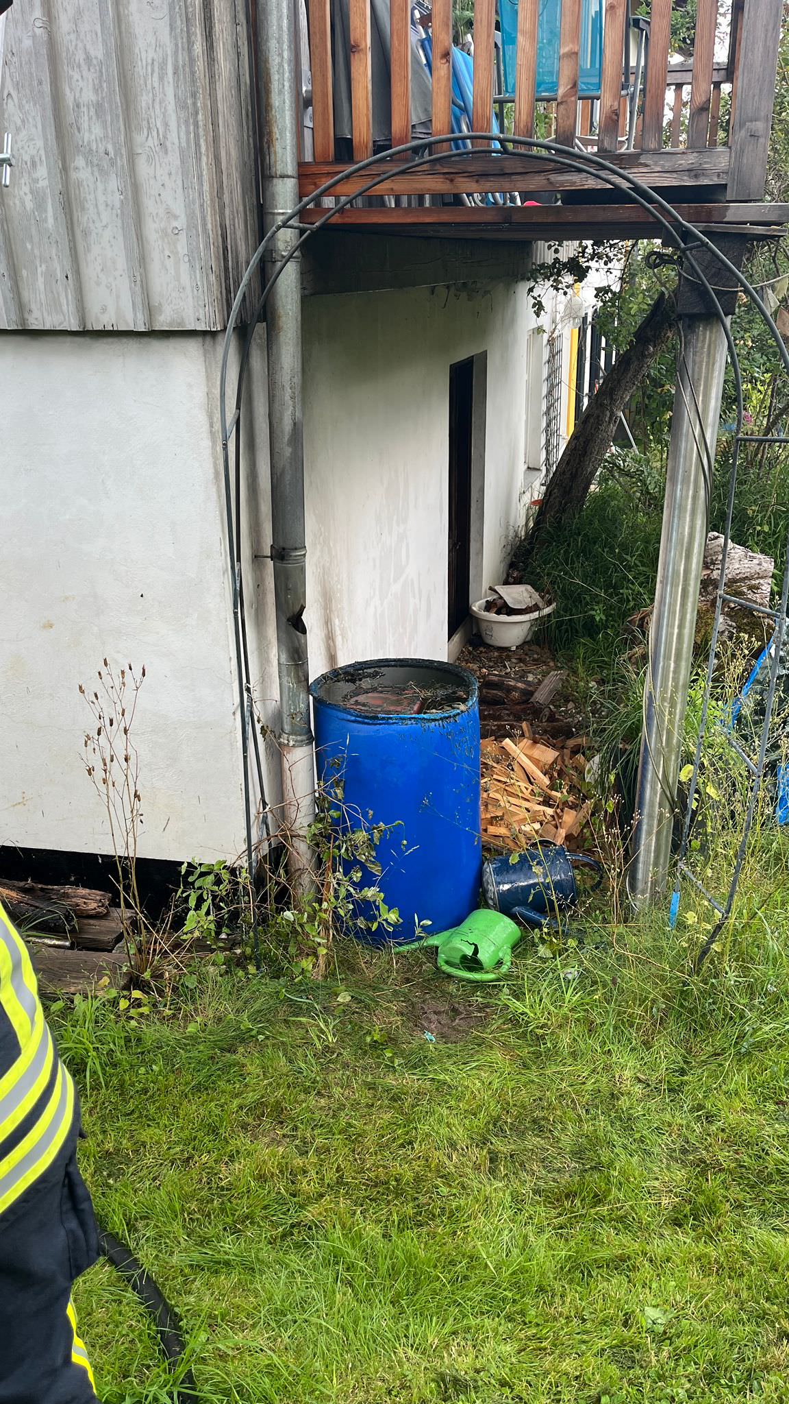 Wir wurden zusammen mit den Feuerwehren aus Wildenwart und Prien zu einem Brand am Gebäude nach Prutdorf alarmiert. Ein Jugendlicher versuchte mit Benzin das Feuer an einem Grill zu entzünden. Dabei fing der Kanister Feuer. Der Jugendliche warf den Kanister in eine nahe gelegene Wassertonne und zog sich dabei leichte Brandverletzungen zu. Die Tonne die an einem Haus stand begann zu brennen und das Feuer drohte auf die Holzverschalung überzugreifen. Zum Glück war beim eintreffen der Feuerwehren das Feuer wieder erloschen. Die Fassade wurde mit der Wbk kontrolliert.