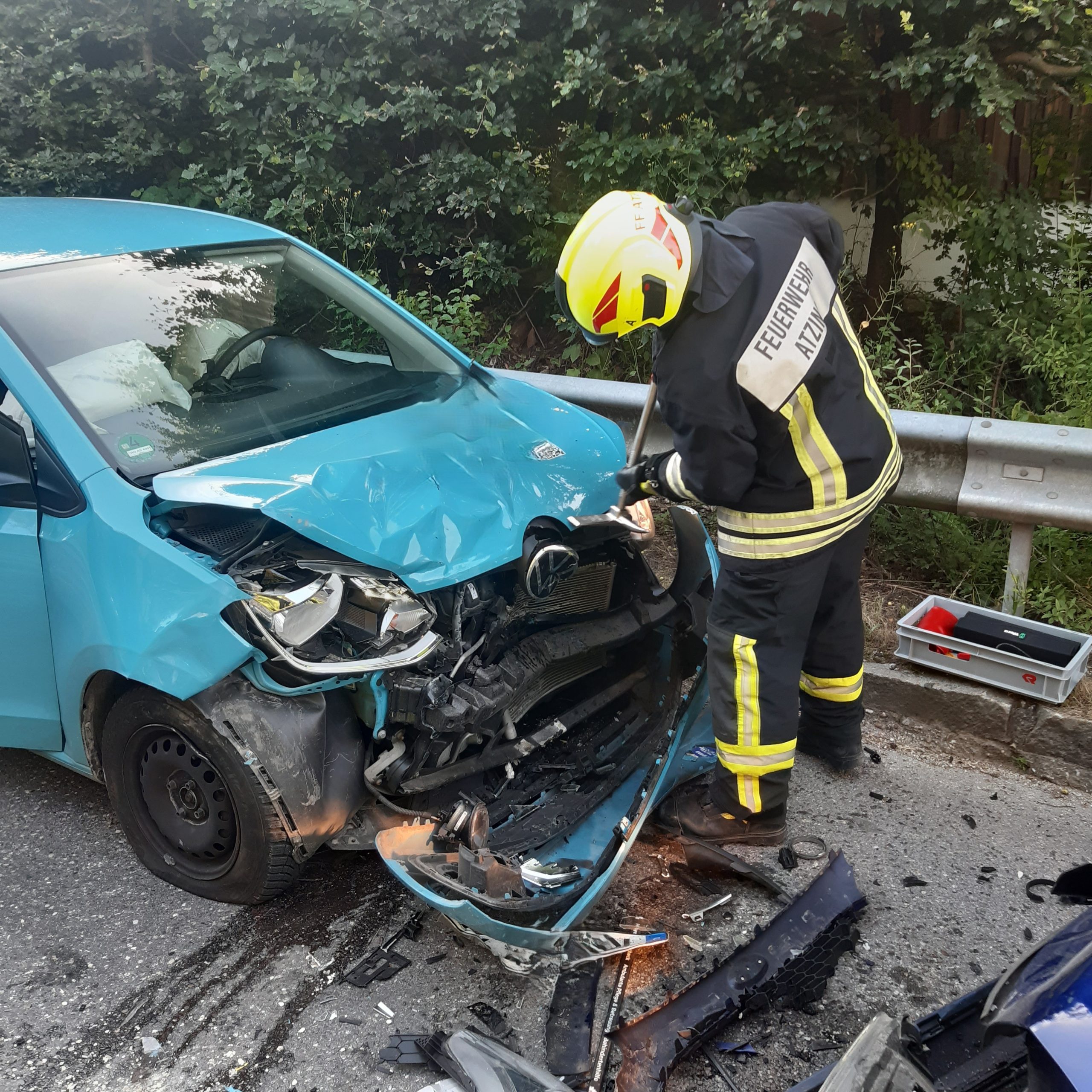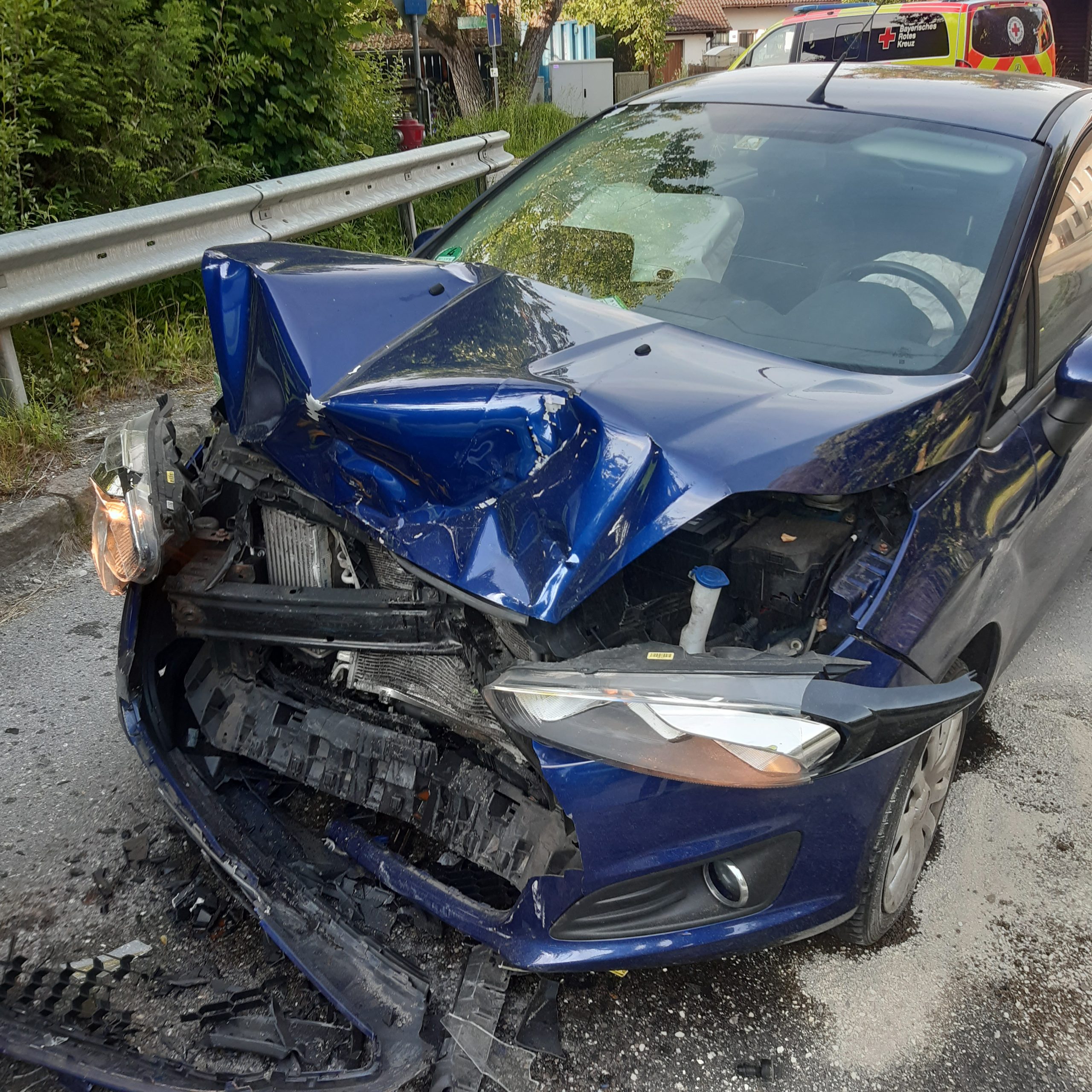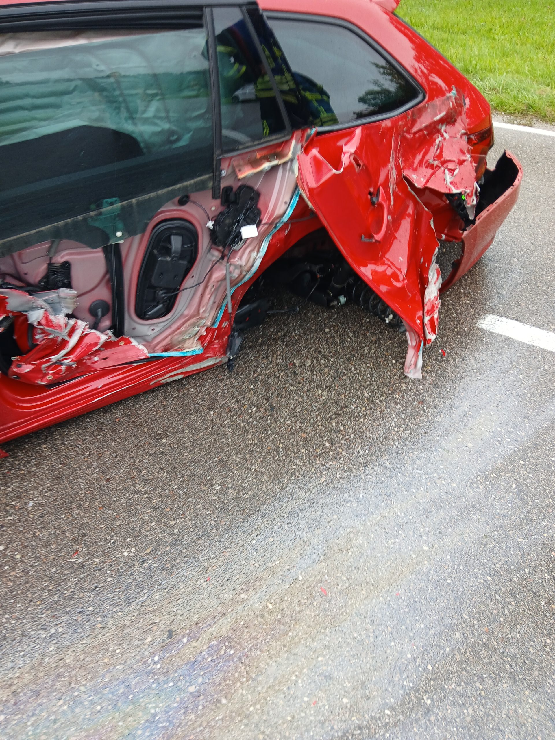 Grund der heutigen Alarmierung war ein Verkehrsunfall zwischen einem Motorrad und einem Pkw. Auf der ST 2093 zwischen Bacham und Prutdorf geriet ein Motorradfahrer in einer Kurve auf die Gegenfahrbahn und kollidierte frontal mit einem entgegenkommenden Pkw. Der Motorradfahrer wurde ca. 30 Meter in ein angrenzendes Feld geschleudert. Wir unterstützten den Rettungsdienst bei der Versorgung des Motorradfahrers und der drei Insassen des beteiligten Pkws. Die Insassen des Pkws wurden mit leichteren Verletzungen ins Krankenhaus gebracht. Der Motorradfahrer wurde mit schwersten Verletzungen ins Klinikum Traunstein geflogen. Des weiteren wurde durch uns der Brandschutz sicher gestellt und eine Umleitung eingerichtet. Nach der Bergung der Fahrzeuge konnte die Straße nach 2 Stunden wieder freigegeben werden.