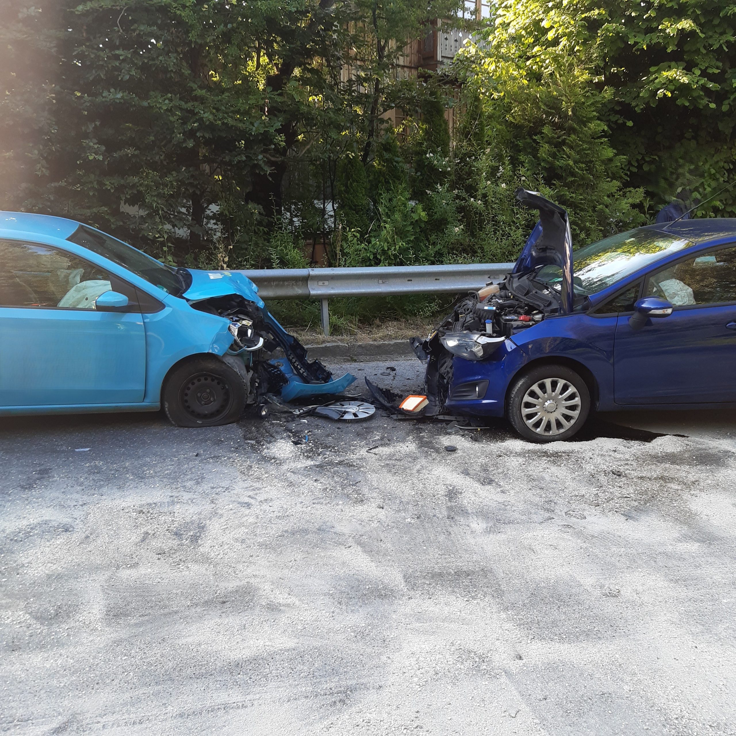 Fast zeitgleich wurden wir zu einem zweiten Einsatz alarmiert. Aufgrund der Dieselspur, die sich von Prutdorf bis nach Prien zog, kam ein Pkw zwischen Bachham und Prutdorf ins schleudern und kollidierte mit einen entgegenkommenden Pkw. Die Insassen wurden zum Glück nicht verletzt. Die beiden beteiligten Fahrzeuge waren nicht mehr fahrbereit und mussten abgeschleppt werden. Die Straße wurde während der Bergung der Fahrzeuge und der Straßenreinigung gesperrt. Nach 1,5 Stunden konnten wir den Einsatz beenden.