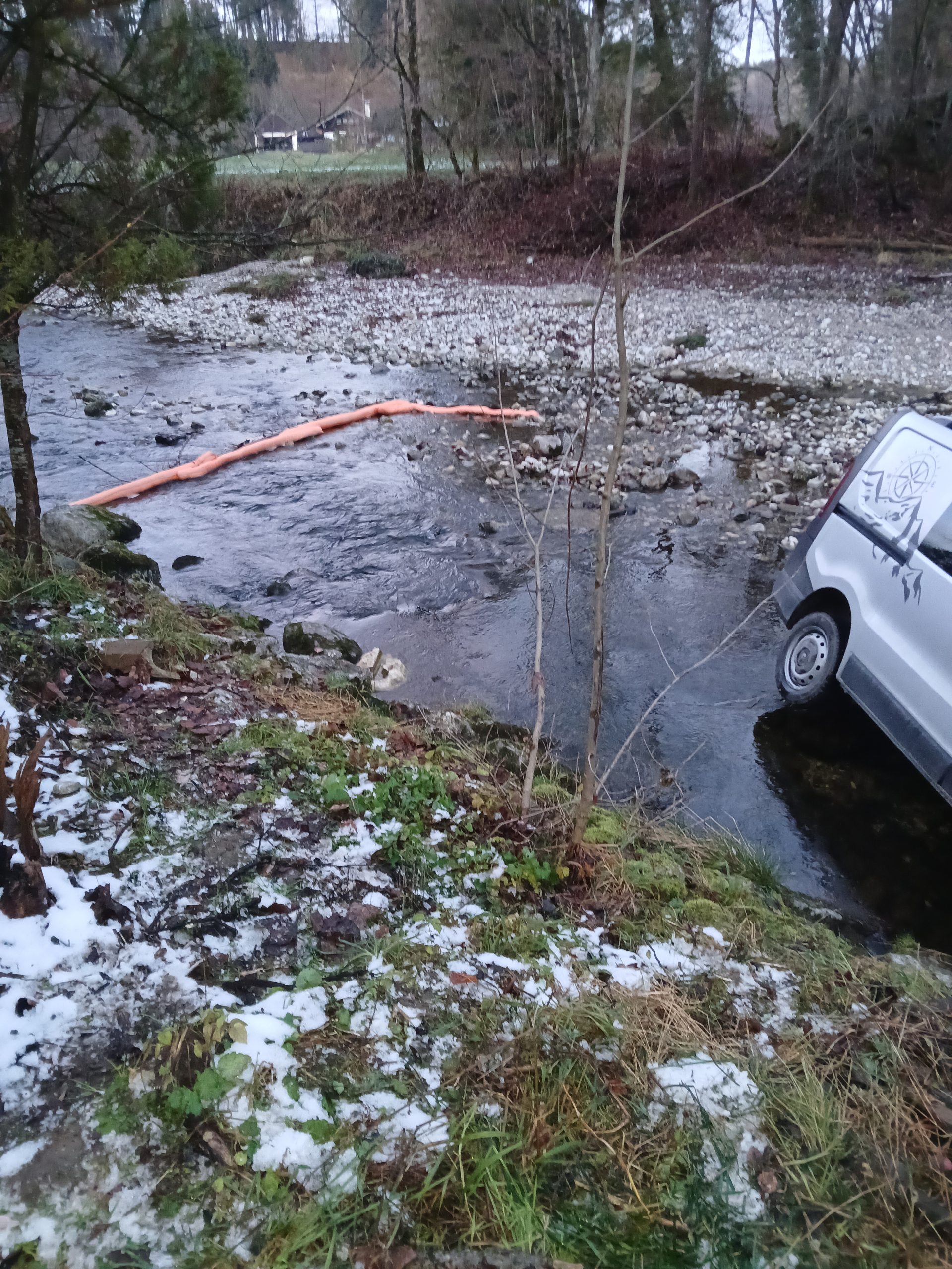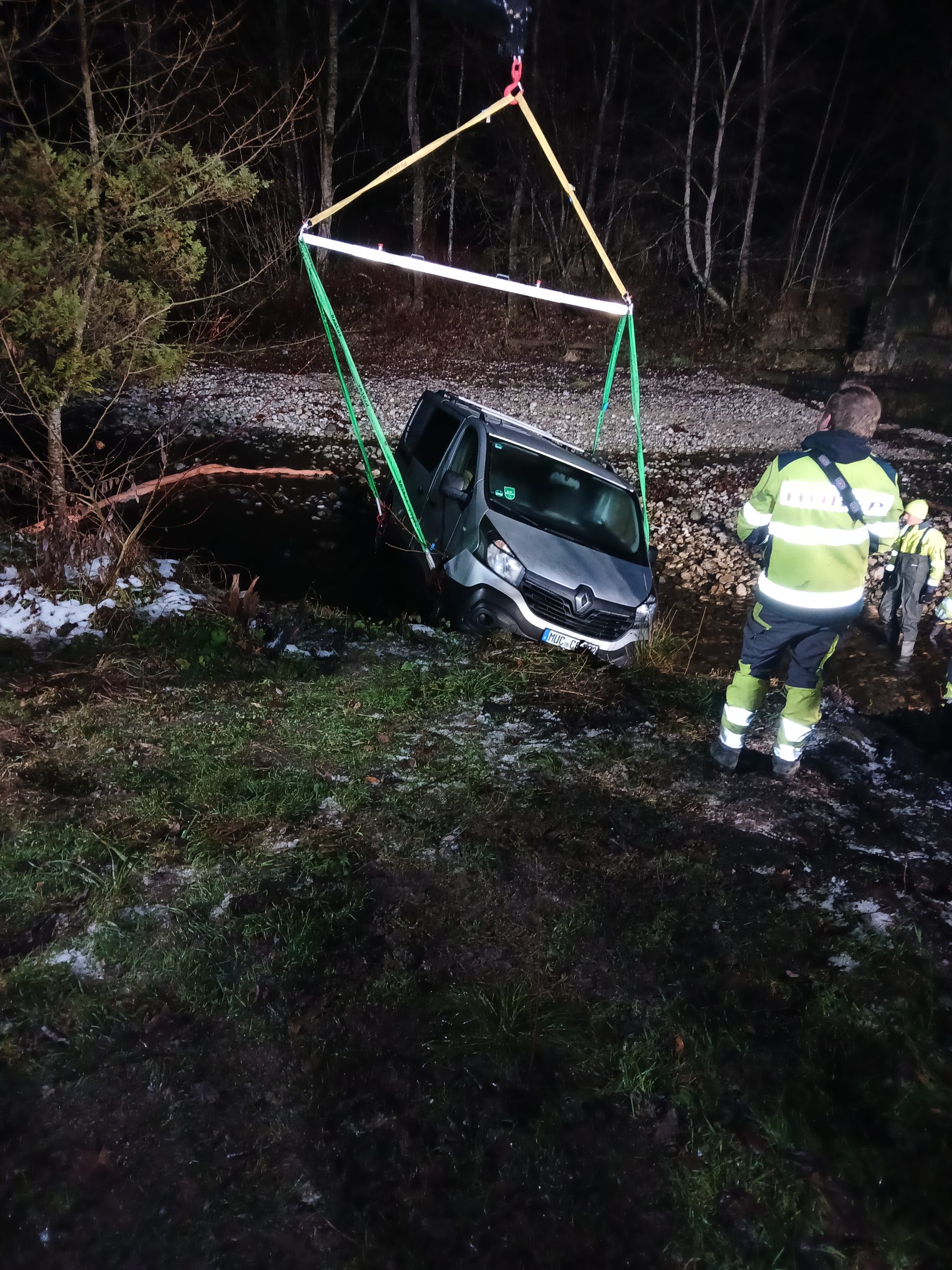 Grund der Alarmierung war ein in die Prien gerollter Pkw. Wir zogen vorsorglich eine Ölsperre ein um mögliche auslaufende Betriebsstoffe bei der Bergung des Fahrzeuges sofort binden zu können. Desweiteren leuchteten wir die Einsatzstelle aus und unterstützten den Abschleppdienst bei der aufwendigen Bergung des Fahrzeuges. Nach zwei Stunden konnten wir den Einsatz beenden.