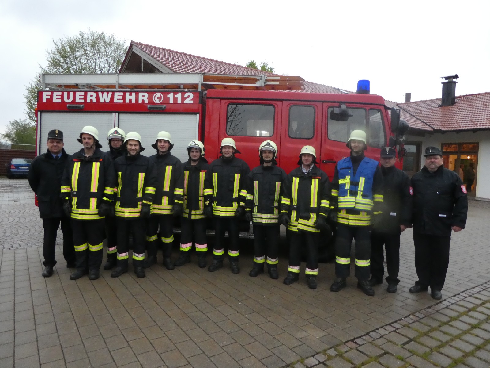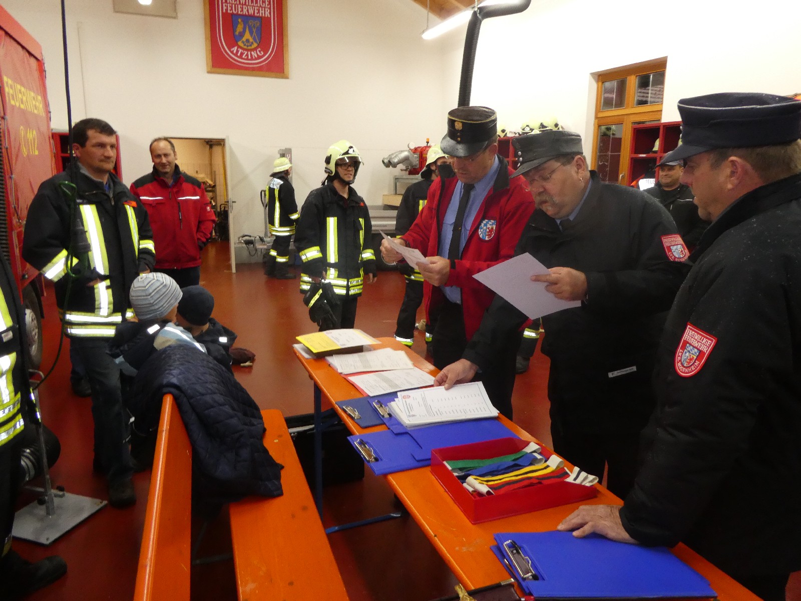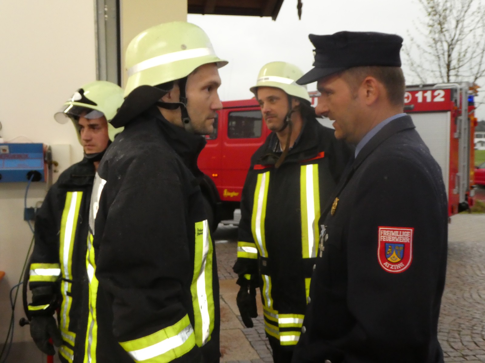 Auch wenn der traditionelle Pfingst-Frühschoppen dem unguten Wetter zum Opfer fiel, hat die Feuerwehr von Atzing derzeit guten Grund zur Zufriedenheit. Trotz Regen stellten sich zwei Leistungsgruppen nach mehrwöchigen Vorbereitungen einer Leistungsprüfung. Beide Gruppen bestanden die Tests. Zu Beginn freuten sich Vorstand Andreas Riepertinger und Kommandant Hans-Peter Riepertinger über die Vollzähligkeit der beiden Gruppen, deren Leistungen in theoretischen und praktischen Teilen von Kreisbrandinspektor Franz Hoheiser und von Kreisbrandmeister Franz Hügel bewertet wurden. Die Aufgabe des Schiedsrichters übernahm Rainer Sonnenhauser, ebenfalls von der Kreisbrandinspektion Rosenheim. Nach den praktischen Abnahme-Prüfungen im regnerischen Freien und den Theoriefragen im trockenen Feuerwehrhaus konnten alle Teilnehmer die Leistungsprüfung erfolgreich abschließen. Dabei gab es folgende Auszeichnungen: Stufe 1 (Bronze) für Martin Schedl, Thomas Stocker und Lukas Vietz, Stufe 2 (Silber) für Daniel Vietz, Fabian Lehmann und Martin Loferer, Stufe 4 (Gold blau) für Guido Obermaier, Benedikt Huber, Günther Wagenhuber und Florian Hamberger, Stufe 5 (Gold grün) für Leonhard Jell, Andreas Schweiger, Robert Höhensteiger und Thomas Schlosser sowie Stufe 6 Gold rot) für Michael Wallner. Nach dem Erfolg lud Gemeinderat Michael Schlosser namens der Gemeinde zu einer verdienten Brotzeit ins Florianstüberl ein.