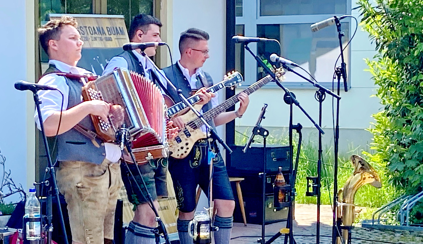 Während sich vor allem Kinder und Jugendliche an den vielen Möglichkeiten des aktiven Unterwegsseins erfreuten und auf diese Weise einen spielerischen Einblick in das Aufgabengebiet der Feuerwehr und der Jugendfeuerwehr bekamen, gab es für die Erwachsenen, Eltern und Großeltern vor allem Gemütlichkeit und Genuss. Dafür sorgten die vielen Biertische und Sonnenschirme sowie der Service der Feuerwehrfrauen, die nach der eigentlichen Frühschoppenzeit auch noch Kaffee und Kuchen anboten während sich die Feuerwehrmänner noch um eine kleine und eigene Weißbier-Bar kümmerten. Erstmals bei einem Atzinger Feuerwehrfrühschoppen und in der Region Prien und Umgebung trat mit der Musik „D´GrossStoana“ eine junge Oberkrainerbesetzung aus dem bayerischen Voralpenland auf. Der Frühschoppen war erst am späten nachmittag zu Ende als wieder der Erlebnis-Parcour abgebaut und die Feuerwehr-Autos in ihrer Garage den angestammten Platz fanden.