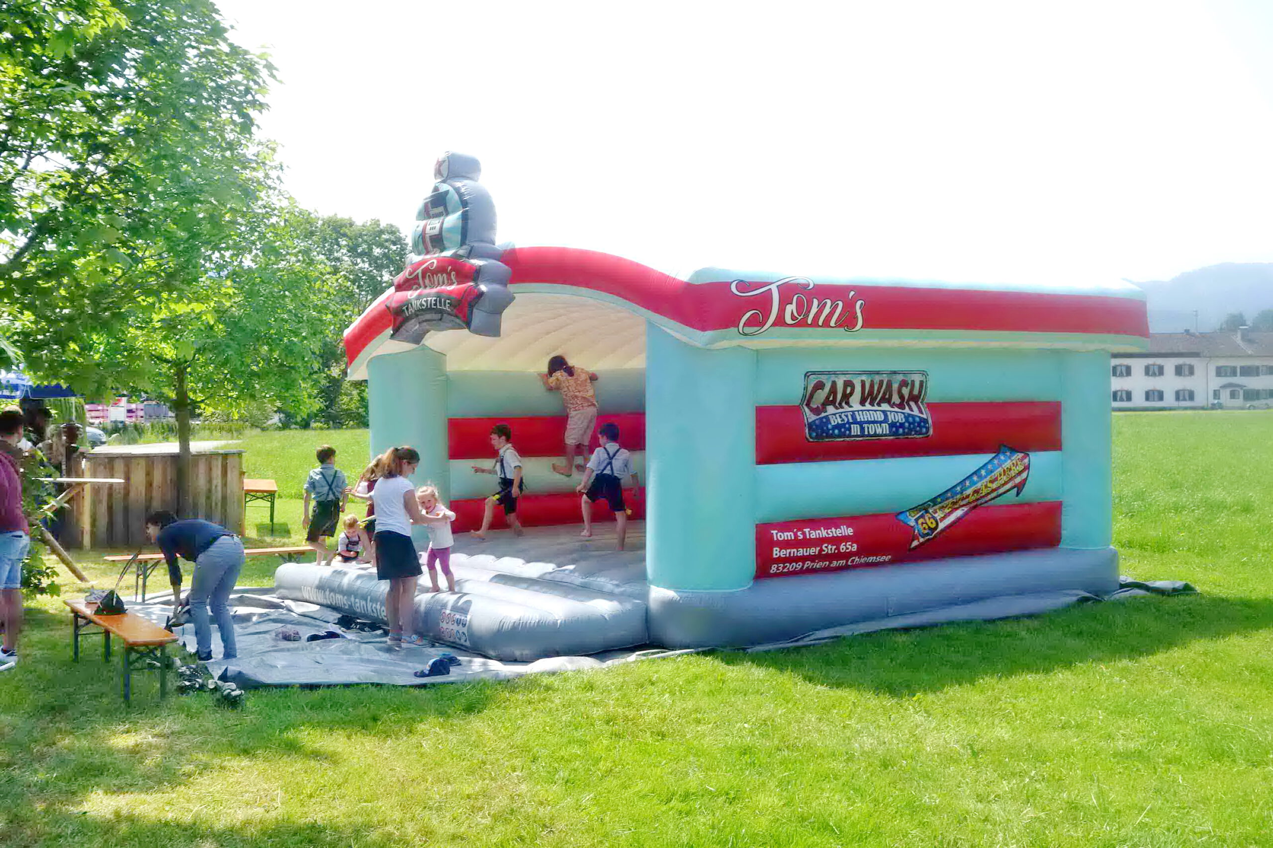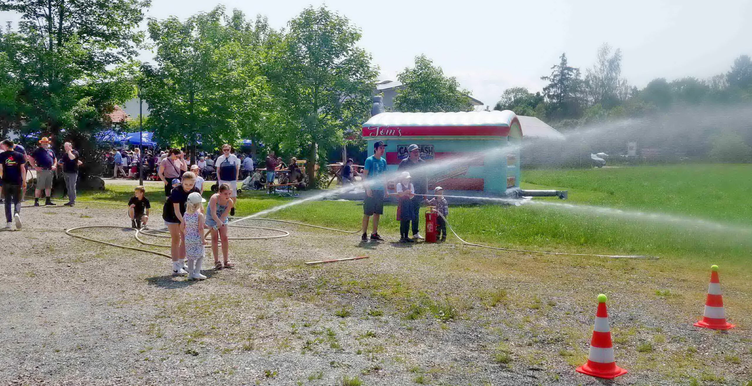 Für Vorstand Martin Loferer, Kommandant Paul Huber und Anna Boggusch von der Jugendfeuerwehr sowie für all ihre Helferinnen und Helfer ging eine umfangreiche Vorbereitung zu Ende als mit dem Erlebnistag begonnen wurde. Das Feuerwehrhaus wurde umgerüstet in eine Versorgungsküche, auf der Wiese wurde Tom´s-Tankstellen-Kinderhüpfburg aufgebaut, ein paar Meter weiter gab es ein Ziel-Löschen mit der Feuerwehrspritze und auf großes Interesse stießen auch die Simulationen für Einsätze und Fettbrände. Und nochmals ein Stück weiter wurde ein Geschicklichkeits- und Geräteparcours aufgebaut, gleich daneben standen die Besucher gerne Schlange als es darum ging, einen Platz im Korb der Feuerwehrleiter aus Prien zu bekommen. „Einfach bärig, dieser Rundblick über Prutdorf und Bachham hinweg“ – so einer der vielen Kommentare nach Rückkehr zum Bodenpersonal aus den Reihen der Priener und Atzinger Feuerwehr, das stundenlang die Gelegenheiten für aussergewöhnliches Sehen, Schauen und Staunen schuf.