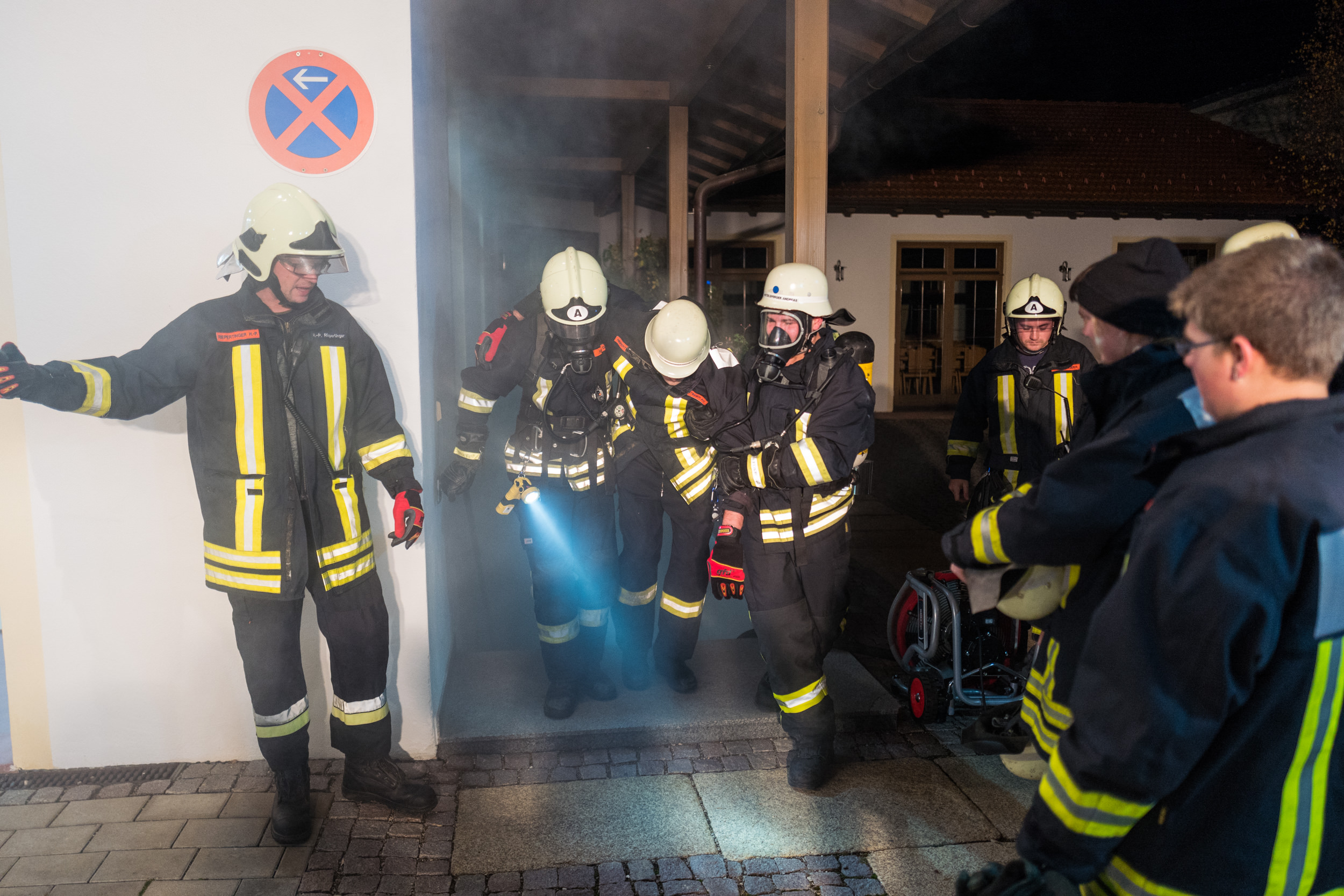 Ein Kellerbrand im Atzinger Vereinshaus mit starker Rauchentwicklung und drei vermissten Personen war der angenommene Fall für eine besondere Einsatzübung der Feuerwehr von Atzing. Diese war mit ihren Fahrzeugen 43/1 und 65/1 sowie mit insgesamt 25 Feuerwehrmännern und einer Feuerwehrfrau im Einsatz. Dank vier Atemschutzträgern wurden die drei vermisst gemeldeten Personen erfolgreich gerettet und durch ausgebildete Sanitäter aus den Reihen der Atzinger Feuerwehr-Aktiven betreut. Nach dem einstündigen Übungseinsatz wurde der Vereinshaus-Keller mit einem Hochdrucklüfter wieder rauchfrei gemacht und die Feuerwehrleute zogen sich zur Übungsanalyse mit Feuerwehrkommandant Paul Huber junior  zurück.