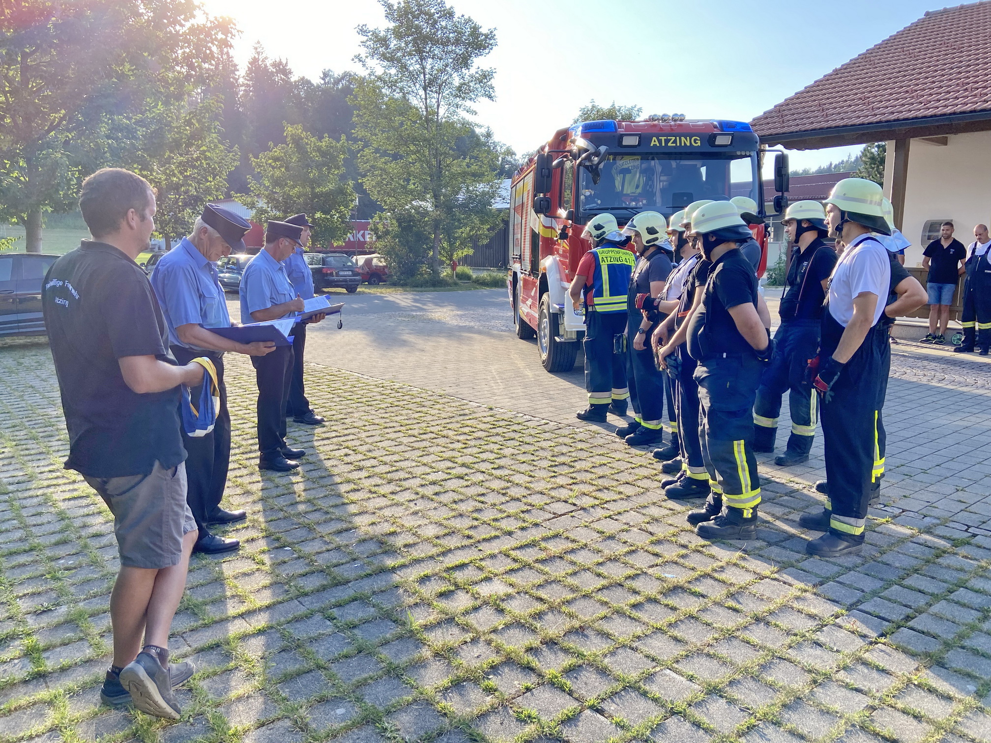 Aufgrund des neuen, im Vorjahr in Dienst gestellten Löschfahrzeuges LF 20 Kat S gab es bei der Feuerwehr von Atzing erhöhten Übungs- und Lernbedarf. Dieser wirkte sich nunmehr auch bei den Vorbereitungen für zwei Gruppen aus, die sich der Leistungabzeichen-Prüfung in Theorie und Praxis unterzogen. Beide Gruppen unter der Führung von Florian Hamberger und Bernhard Summerer bestanden den kritischen Beobachtungen und Auswertungen von Kreisbrandinspektor Franz Hochhäuser, von Kreisbrandmeister Manfred Gierlinger und Kreisbrandmeister Rainer Tippl von der Kreisbrandinspektion Rosenheim. Nach der Abnahme lud die Gemeinde Prien noch zu einer gemeinsamen Brotzeit ein, dabei bedankten sich Vorstand Martin Loferer und Kommandant Paul Huber bei den Aktiven sowie beim Schiedsrichter-Gespann für das gute Zusammenwirken.