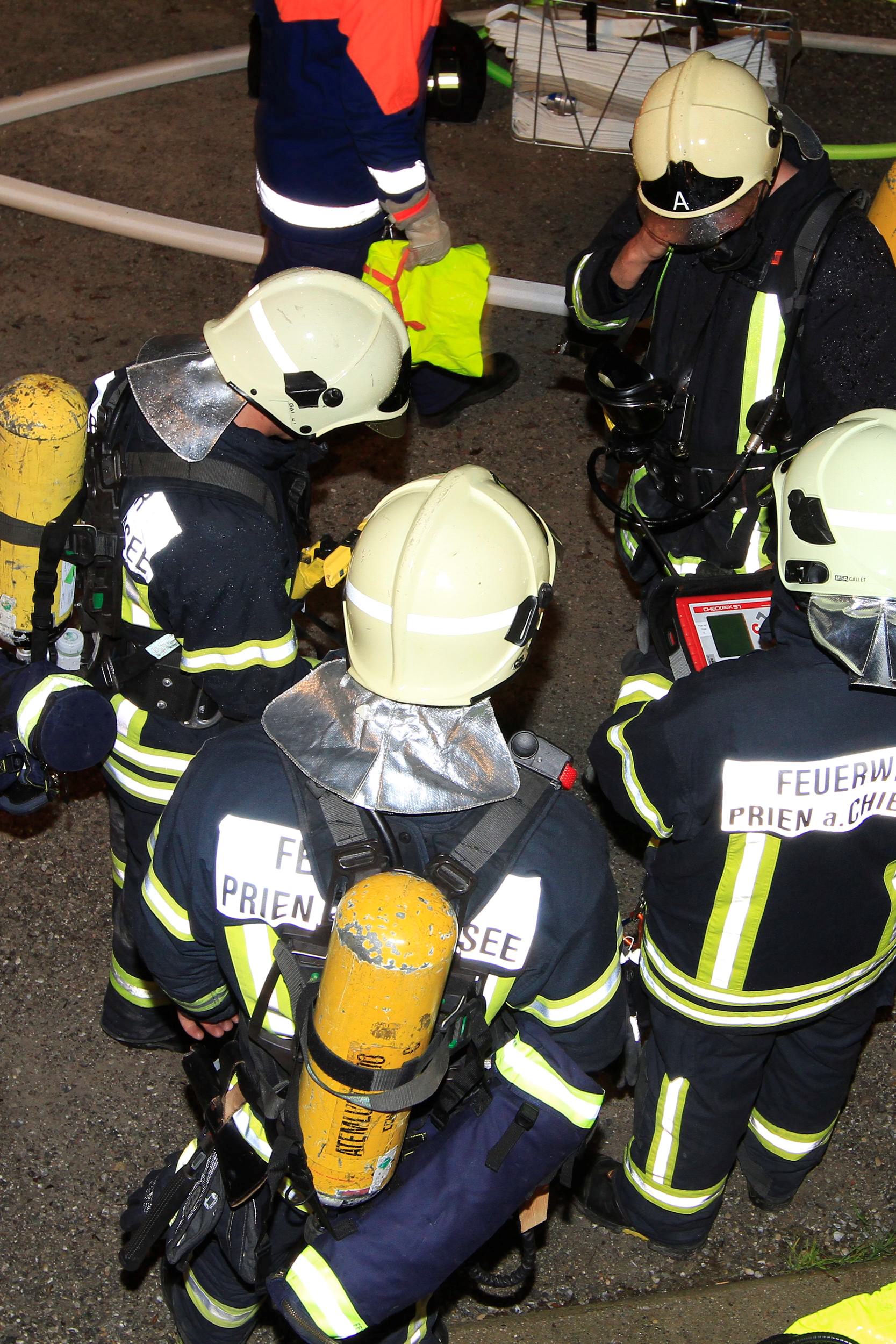 Eine Großübung mit einem angenommenen Brand wurde in den Bootshallen der Stippelwerft in Prien mit rund 100 eingelagerten Booten und mit der Annahme, dass sechs Personen in der Halle sind, abgehalten. Insgesamt 120 Feuerwehrleute der Wehren von Prien (mit 8 Einsatzfahrzeugen), von Rimsting (3), von Greimharting (2), von Atzing (2) und von Hittenkirchen (2) waren im Einsatz, um in der von Nebelmaschinen und Scheinwerfern veränderten Halle die Opfer zu retten. Die Alarmierung begann 20 Minuten vor 20 Uhr und war um 21 Uhr beendet. Bei der anschließenden Besprechung zeigten sich Kreisbrandinspektor Franz Hochhäuser sowie Einsatzleiter und Priens Feuerwehr-Kommandant Stefan Pfliegl überaus zufrieden mit dem Verlauf der großen Übung. Zum Dank gab es abschließend von der Priener Tourismusgesellschaft noch eine Grill-Brotzeit.
