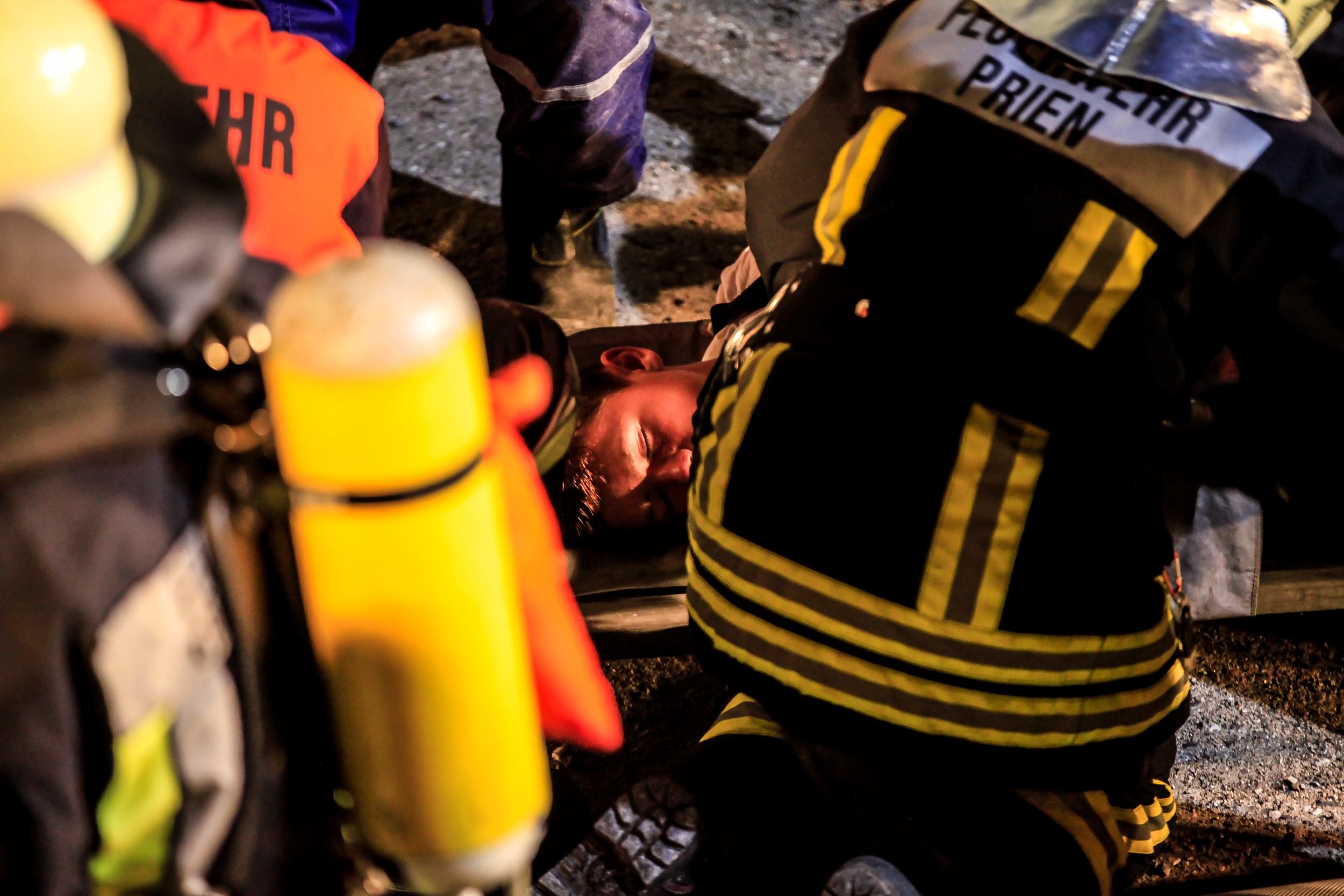 Fotos: Rainer Nitzsche/Michael Neukum – Eindrücke von der Groß-Übung der Feuerwehren in der Stippelwerft in Prien
