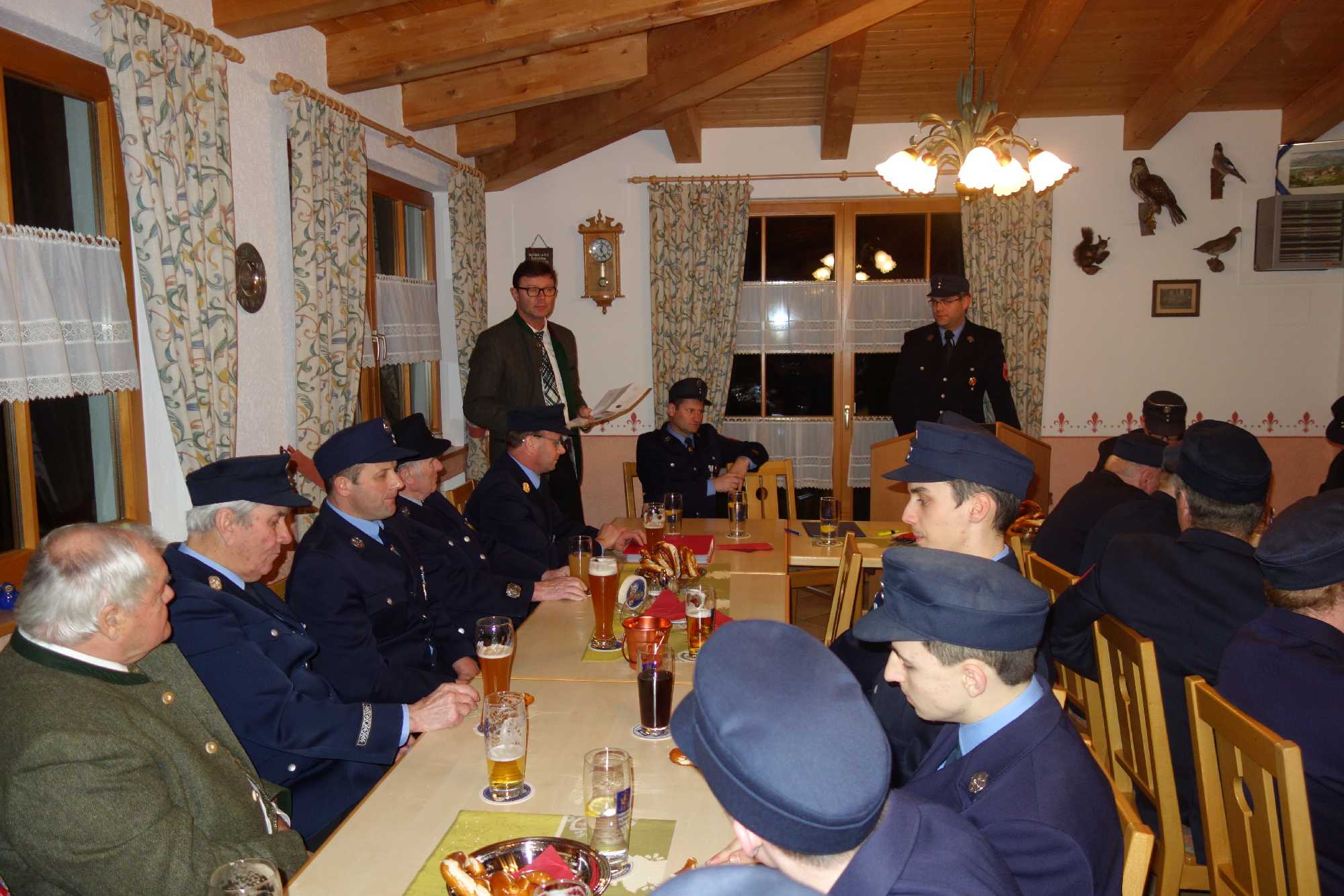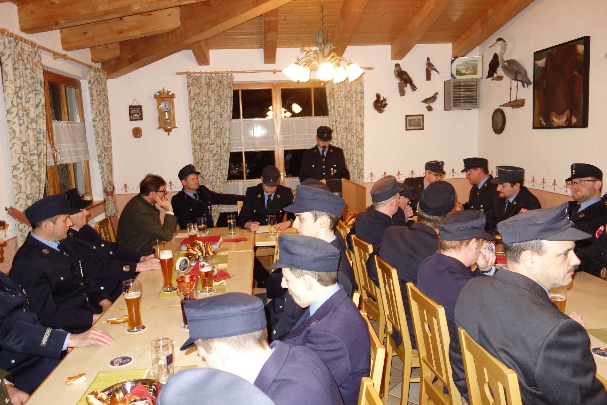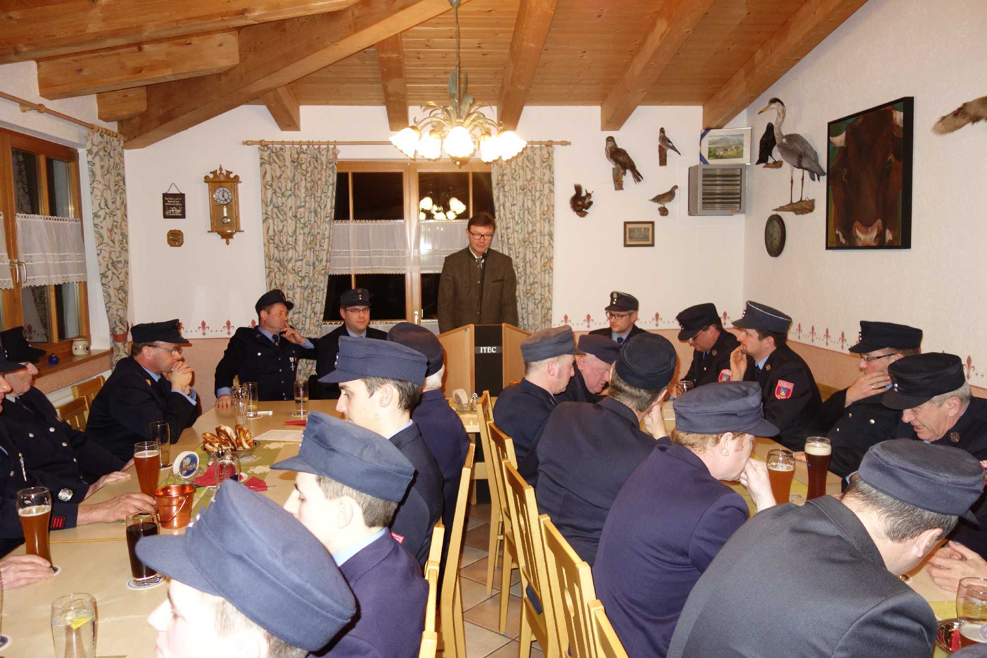 Bürgermeister Jürgen Seifert, der vor seinem Grußwort für die verhinderten Kassenprüfer Markus Kalal und Florian Rauch die Entlastung der Vorstandschaft vornahm, dankte der Atzinger Feuerwehr für ihren hochprofessionellen Einsatz und für ihren hohen Ausbildungswillen. Ein besonderer Dank galt dafür, dass mit der Priener Feuerwehr so gut zusammengearbeitet wird. „Als ehemaliger Polizist weiß ich um Situationen, wenn es bei Unfällen und Einsätzen um Leib und Leben geht. Aus diesem Grund ist das Ausmaß der Zug-Katastrophe von Bad Aibling unbeschreiblich. In diesem Sinne danke ich allen Hilfskräften, die ständig mit innerer Bereitschaft bereit sind, das unbezahlbare Ehrenamt zum Schutze von Mitbürgern auszufüllen. In der Feuerwehr Atzing läuft es super, super gut!“ – so der Bürgermeister zur Atzinger Wehr, für die die Gemeinde zum Abschluss der Versammlung eine Brotzeit spendierte. Peter Wendl als Vorsitzender vom Förderverein „Vereinshaus Atzing“ machte deutlich, dass der Förderverein auch 15 Jahre nach seiner Gründung noch viel für die Feuerwehr und für den Trachtenverein tun kann. Im Vorjahr bekam die Feuerwehr 1.500 Euro, heuer wird es aufgrund des stark besuchten Dorffaschings wieder einen Zuschuss geben. Wendl bat die Atzinger und vor allem die Jugend, dem Förderverein im Sinne der Ortsvereine beizutreten und er lud zur Mitgliederversammlung am 22. März ein. Trachtenvereins-Vorstand Anton Hötzelsperger dankte für das gute und aktive Miteinander unter dem gemeinsamen Vereinshaus-Dach und er lud zu gemeinsamen Vorbereitungen und Veranstaltungen beim Chiemgauer Gautrachtenfest 2017 in Atzing ein. Ein weiterer Dank kam von Priens Feuerwehr-Kommandanten Stefan Pfliegl für die gute und effiziente Zusammenarbeit in vielen Wartungs-, Übungs- und Einsatzbereichen. Jakob Steiner als Vorsitzender des Fördervereins „Blaskapelle Wildenwart“ dankte für die Möglichkeit, dass die Jugendblaskapelle beim Feuerwehr-Frühschoppen zum Einsatz kommt und für die Nutzungsmöglichkeiten des Florianstüberls nach dem Weihnachtssingen in St. Salvator. Den Abschluss der Beiträge bildeten Dankesworte an die gesamte Vorstandschaft, an die Kommandanten Hans-Peter Riepertinger und Paul Huber junior, an Fähnrich Hans Riepertinger, an Zeugwart Lenz Höhensteiger, an Jugendwart Benedikt Huber, an die Grundeigentümer von Munzing und Arbing für deren Entgegenkommen bei Veranstaltungen im Buchenwald, an Yvonne Jell für die Pflege des Florianstüberls sowie an die Frauen der Feuerwehrmänner, da diese viel Zeit außerhalb der Familie verbringen müssen. Zweiter Vorstand Hans Fischer bescheinigte Erstem Vorstand Andreas Riepertinger eine umsichtige Führung des Vereins. Dessen Ankündigung, ebenso wie Kommandant Hans-Peter Riepertinger bei den nächstjährigen Neuwahlen nicht mehr antreten zu wollen, überraschte und war letztlich ein kleiner Schatten auf eine ansonsten überaus harmonische und informative Feuerwehr-Zusammenkunft in Atzing.