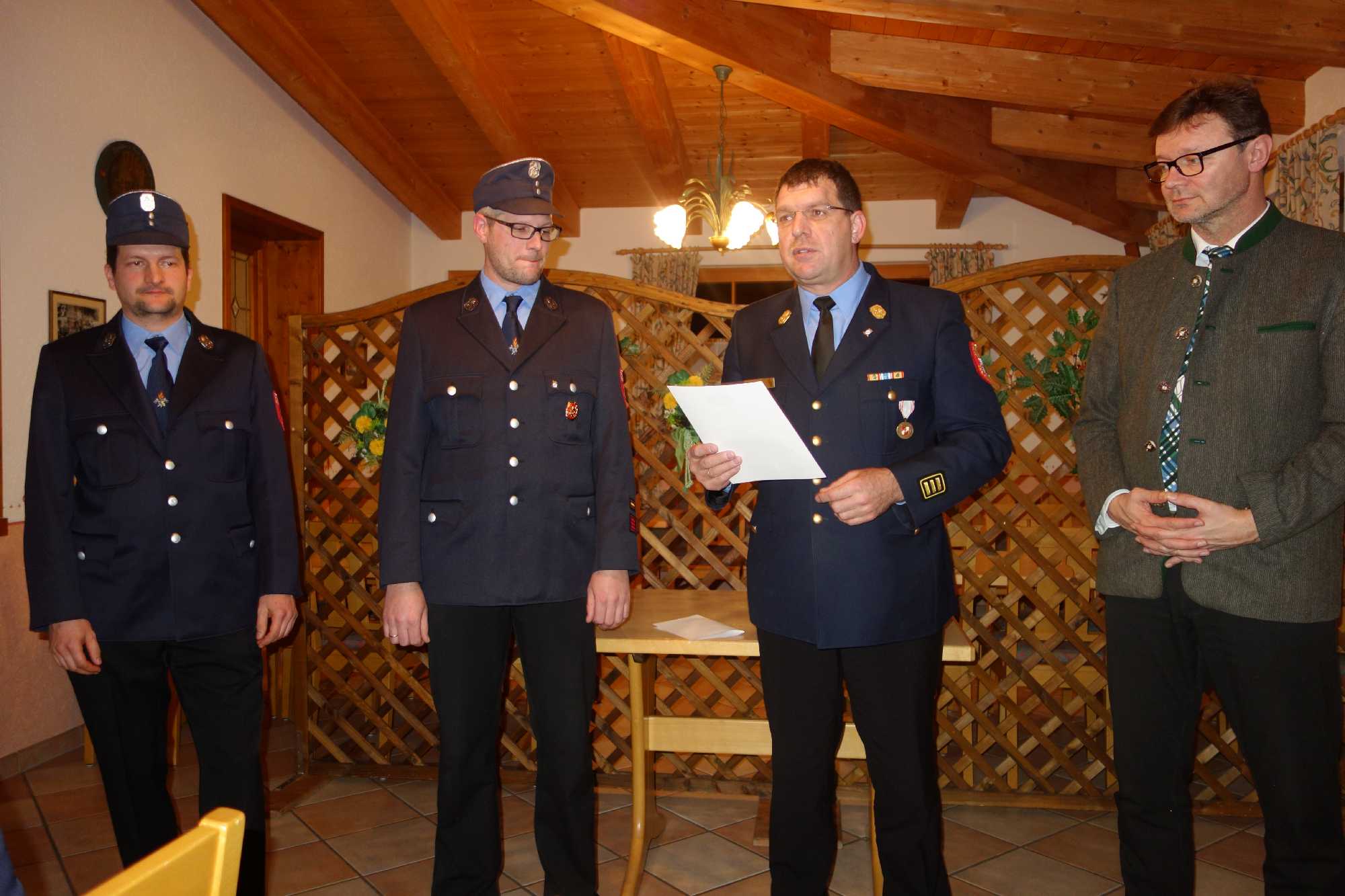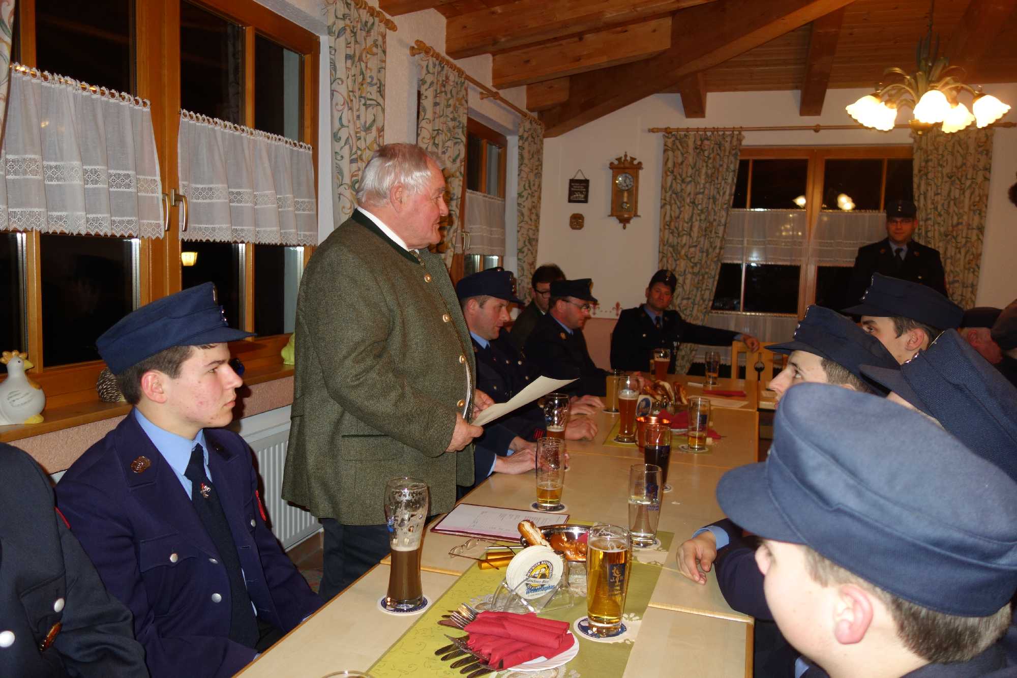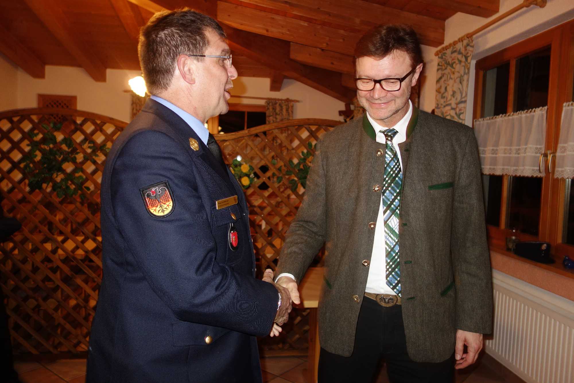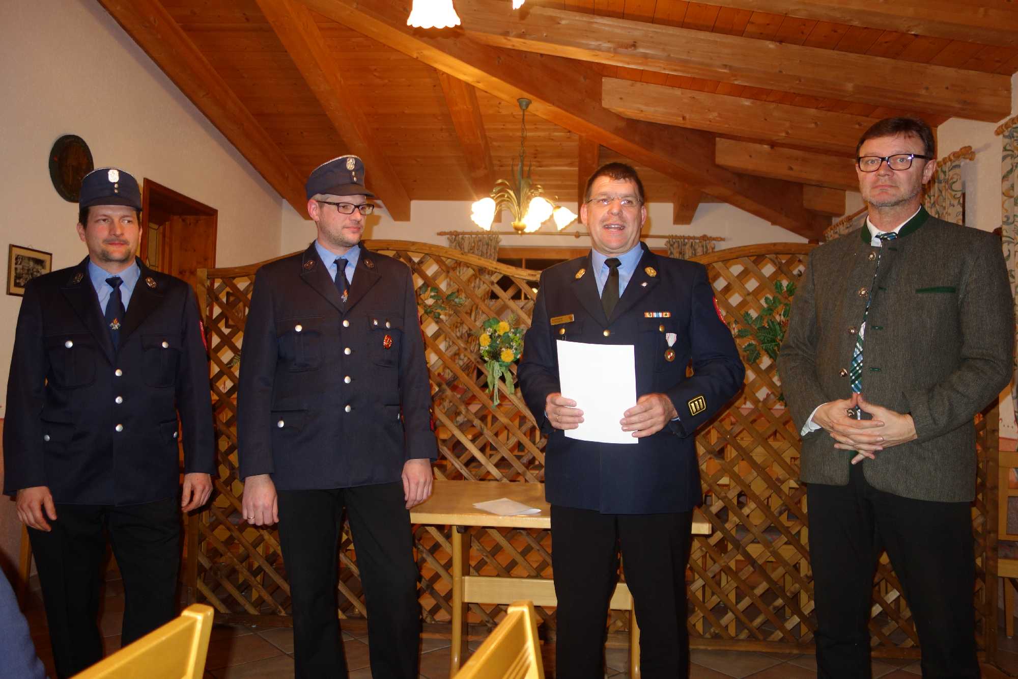 Bürgermeister Jürgen Seifert, der vor seinem Grußwort für die verhinderten Kassenprüfer Markus Kalal und Florian Rauch die Entlastung der Vorstandschaft vornahm, dankte der Atzinger Feuerwehr für ihren hochprofessionellen Einsatz und für ihren hohen Ausbildungswillen. Ein besonderer Dank galt dafür, dass mit der Priener Feuerwehr so gut zusammengearbeitet wird. „Als ehemaliger Polizist weiß ich um Situationen, wenn es bei Unfällen und Einsätzen um Leib und Leben geht. Aus diesem Grund ist das Ausmaß der Zug-Katastrophe von Bad Aibling unbeschreiblich. In diesem Sinne danke ich allen Hilfskräften, die ständig mit innerer Bereitschaft bereit sind, das unbezahlbare Ehrenamt zum Schutze von Mitbürgern auszufüllen. In der Feuerwehr Atzing läuft es super, super gut!“ – so der Bürgermeister zur Atzinger Wehr, für die die Gemeinde zum Abschluss der Versammlung eine Brotzeit spendierte. Peter Wendl als Vorsitzender vom Förderverein „Vereinshaus Atzing“ machte deutlich, dass der Förderverein auch 15 Jahre nach seiner Gründung noch viel für die Feuerwehr und für den Trachtenverein tun kann. Im Vorjahr bekam die Feuerwehr 1.500 Euro, heuer wird es aufgrund des stark besuchten Dorffaschings wieder einen Zuschuss geben. Wendl bat die Atzinger und vor allem die Jugend, dem Förderverein im Sinne der Ortsvereine beizutreten und er lud zur Mitgliederversammlung am 22. März ein. Trachtenvereins-Vorstand Anton Hötzelsperger dankte für das gute und aktive Miteinander unter dem gemeinsamen Vereinshaus-Dach und er lud zu gemeinsamen Vorbereitungen und Veranstaltungen beim Chiemgauer Gautrachtenfest 2017 in Atzing ein. Ein weiterer Dank kam von Priens Feuerwehr-Kommandanten Stefan Pfliegl für die gute und effiziente Zusammenarbeit in vielen Wartungs-, Übungs- und Einsatzbereichen. Jakob Steiner als Vorsitzender des Fördervereins „Blaskapelle Wildenwart“ dankte für die Möglichkeit, dass die Jugendblaskapelle beim Feuerwehr-Frühschoppen zum Einsatz kommt und für die Nutzungsmöglichkeiten des Florianstüberls nach dem Weihnachtssingen in St. Salvator. Den Abschluss der Beiträge bildeten Dankesworte an die gesamte Vorstandschaft, an die Kommandanten Hans-Peter Riepertinger und Paul Huber junior, an Fähnrich Hans Riepertinger, an Zeugwart Lenz Höhensteiger, an Jugendwart Benedikt Huber, an die Grundeigentümer von Munzing und Arbing für deren Entgegenkommen bei Veranstaltungen im Buchenwald, an Yvonne Jell für die Pflege des Florianstüberls sowie an die Frauen der Feuerwehrmänner, da diese viel Zeit außerhalb der Familie verbringen müssen. Zweiter Vorstand Hans Fischer bescheinigte Erstem Vorstand Andreas Riepertinger eine umsichtige Führung des Vereins. Dessen Ankündigung, ebenso wie Kommandant Hans-Peter Riepertinger bei den nächstjährigen Neuwahlen nicht mehr antreten zu wollen, überraschte und war letztlich ein kleiner Schatten auf eine ansonsten überaus harmonische und informative Feuerwehr-Zusammenkunft in Atzing.
