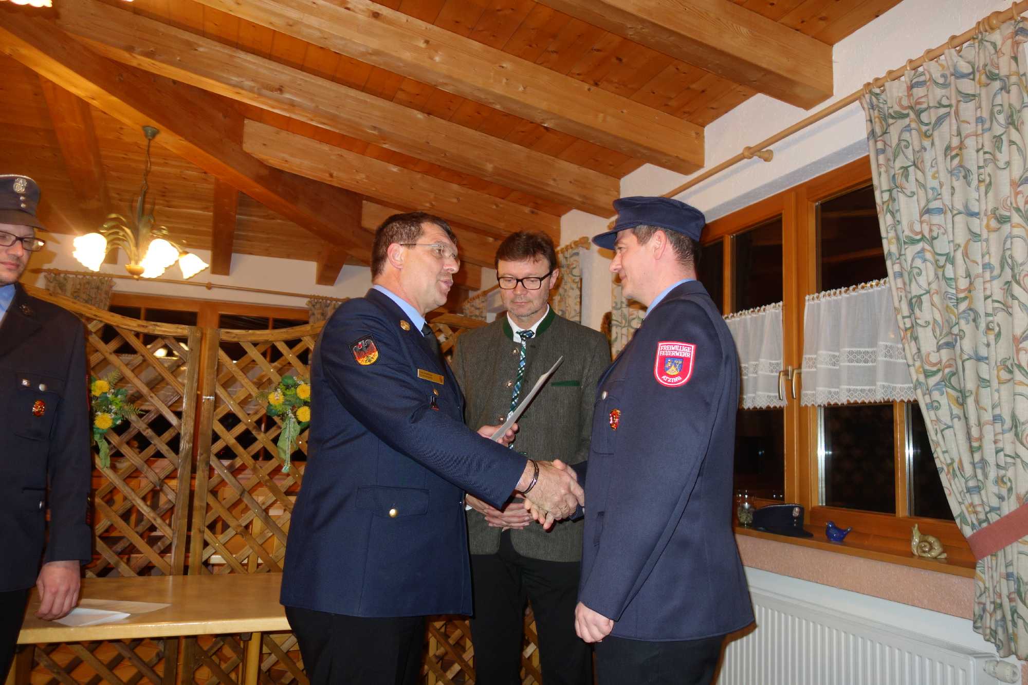 38 Aktive und Feuerwehr-Anwärter, davon 13 Atemschutzträger und 10 Maschinisten sowie weitere Spezialisten sind in Atzing bestens ausgebildet. Ihre Einsätze waren unter anderem gefordert bei Keller-Überschwemmungen, bei einem LKW-Unfall, bei einem Waldbrand aufgrund zündelnder Jugendlicher, bei einem PKW-Brand, bei der Beseitigung von Diesel- und Ölspuren, bei Sturmschäden, bei einem Heizöltank-Defekt, bei einer Giftstoff-Bekämpfung in einer örtlichen Schreinerei, bei einer Wespennest-Beseitigung, bei Verkehrs-Sicherungs- und Parkplatz-Ordnungs-Diensten sowie bei sonstigen Alarmierungen. Der größte Einsatz war bei einem Wohnhausbrand in Bachham als um 3 Uhr in der Früh die dortigen Bewohner gerettet und ein Übergreifen auf das Nachbarhaus zusammen mit weiteren Feuerwehren verhindert werden konnte. Insgesamt waren bei diesem Einsatz 150 Rettungskräfte unter der örtlichen Einsatzleitung von Atzinger FFW-Kommandant Hans-Peter Riepertinger tätig. Insgesamt gab es zwölf Monatsübungen, fünf Zwischenübungen sowie mit den Feuerwehren von Prien zwei Gemeinschafts-Übungen. Erfolgreich bestanden haben Andreas Schweiger und Florian Hamberger die Gruppenführer-Lehrgänge. An 25 Abenden nahmen Atzinger Feuerwehrleute an der Modularen Truppen-Ausbildung mit je sechs theoretischen und sechs praktischen Prüfungen sowie mit Kameraden der Nachbarswehren teil, diese neue Form der Ausbildung soll auch 2017 fortgesetzt werden. Insgesamt sammelten sich 1.450 Übungs- und Einsatzstunden an, allesamt ehrenamtlich geleistet. Zufriedenstellend ist der Zustand des Fuhrparks, für die neue Hochleistungspumpe wurde ergänzendes Material zugekauft und seit Mai letzten Jahres kann ein Mehrzweck-Anhänger eingesetzt werden. Erfreuten Zuwachs im Personal gab es auch dadurch, dass Andreas Höglauer aufgrund seines Umzugs von der Gemeinde Unterwössen in die Gemeinde Prien seine bei der Feuerwehr Oberwössen erworbenen Fähigkeiten nunmehr der Feuerwehr in Atzing zur Verfügung stellt.