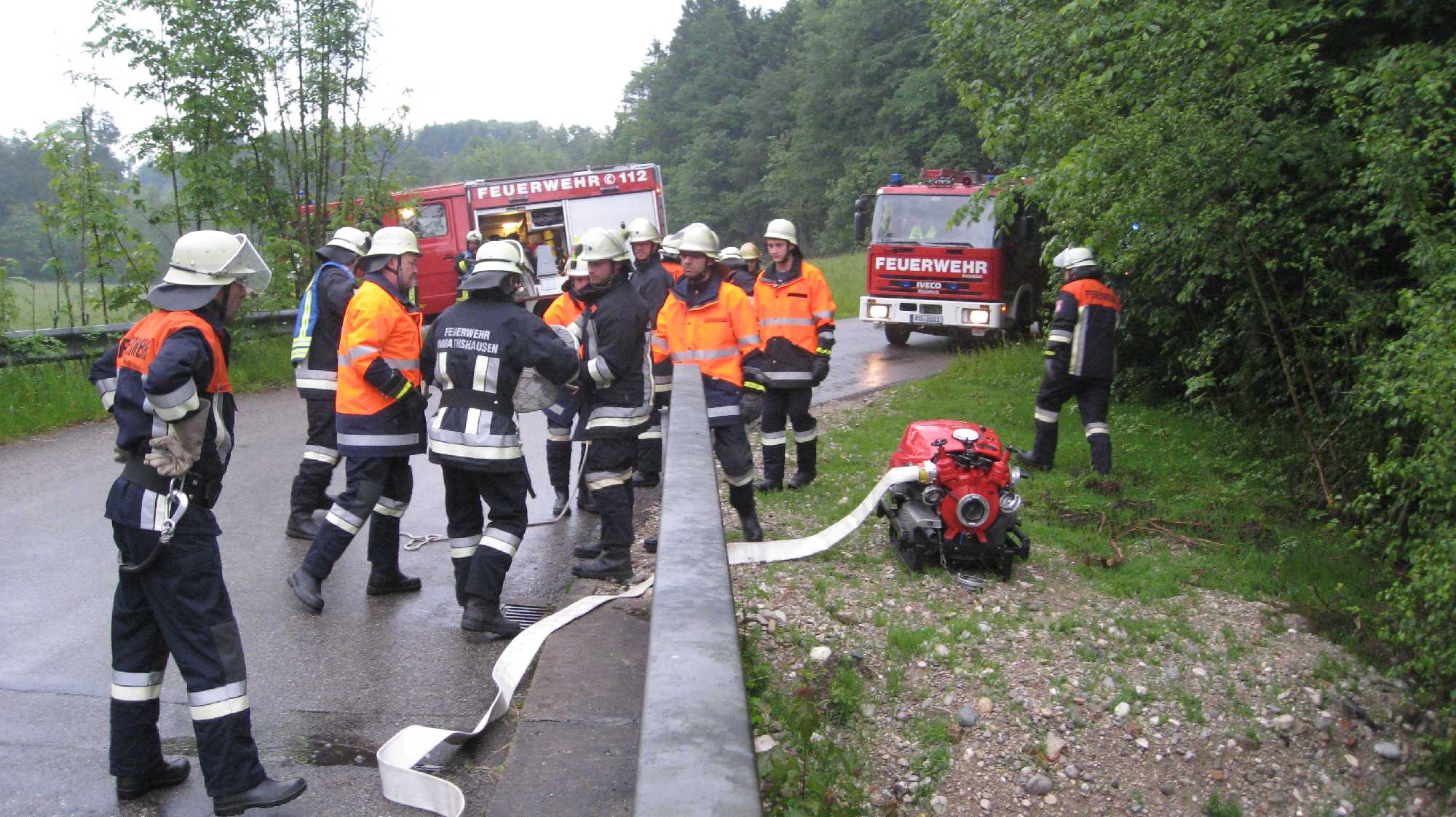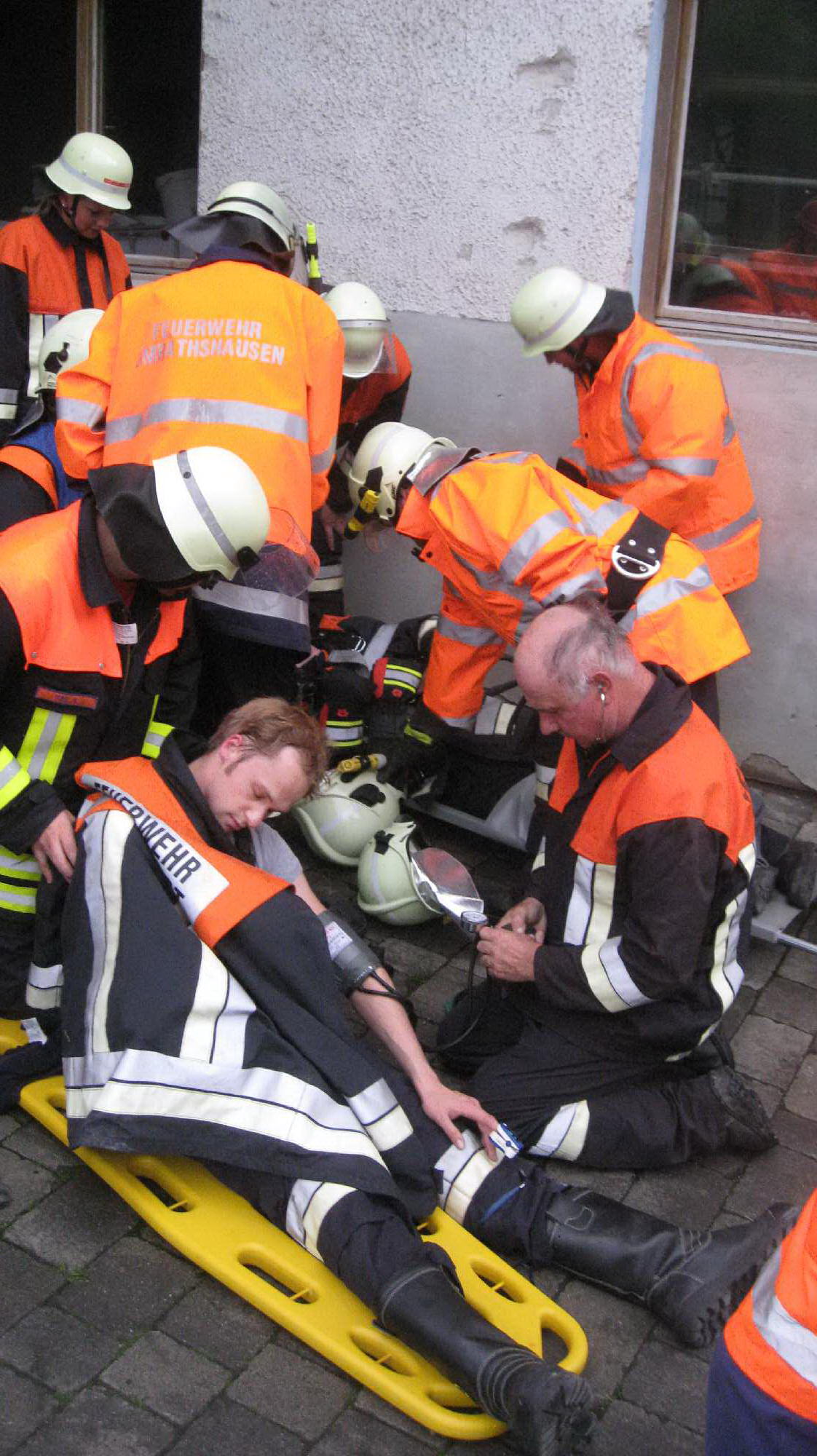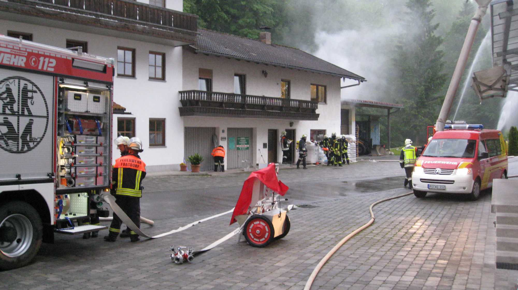 Die Freiwilligen Feuerwehren Wildenwart, Atzing, Umratshausen und Frasdorf übten einen Abend lang gemeinsam, die Leitung oblag der Feuerwehr Wildenwart. Angenommen war der Brand einer Lagerhalle eines Landwirtschaftlichen Lagerhauses in der Rainermühle. Wildenwart. 11/1 übernahm die Einsatzleitung und korrespondierte mit der Leitstelle in Rosenheim. Alle vier Feuerwehren positionierten ihre Tragkraftspritzen an geeigneten Plätzen an der Prien und dem Mühlbach, um Wasser zur Brandbekämpfung zu entnehmen. Da nicht bekannt war, ob sich noch Personen im Brandobjekt befanden, schickte die Feuerwehr Wildenwart einen Atemschutztrupp in das Gebäude voraus. Im Inneren entdeckten die Feuerwehrleute ein Gasflaschenlager. Im selben Moment passierte auch schon das Unglück. Eine der Flaschen explodierte und verletze den Voraustrupp schwer. Der Atemschutz Sicherungstrupp aus Umratshausen drang in das Gebäude vor und brachte seine schwer verletzten Kameraden aus dem Gefahrenbereich. Die Feuerwehren Atzing und Frasdorf stellten zur Absicherung weitere Atemschutztrupps bereit. Aufgrund der schweren Verletzungen musste ein Rettungshubschrauber angefordert werden. Den dafür notwendigen Landeplatz richteten die Feuerwehren Atzing und Umratshausen auf der gegenüberliegenden Wiese ein. Ausgebildete Sanitäter der Feuerwehren versorgten die Verletzten bis zum Eintreffen des Rettungsdienstes. Bei der anschließenden Übungsbesprechung waren sich alle Feuerwehrleute einig, dass ein sehr interessantes und durchaus realistisches Einsatzszenario geprobt wurde. Für Getränke und Brotzeit sorgte die Gemeinde Frasdorf.