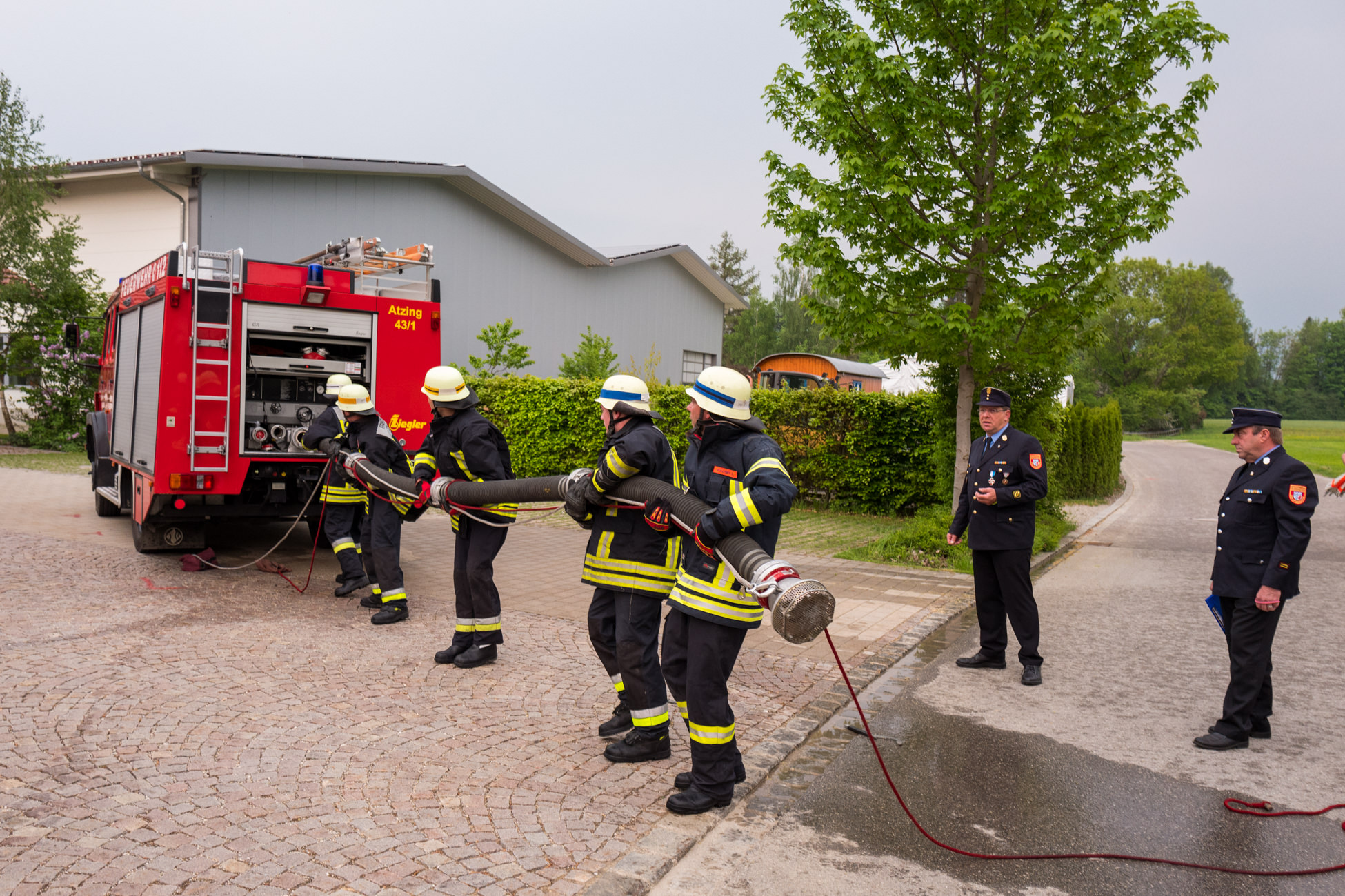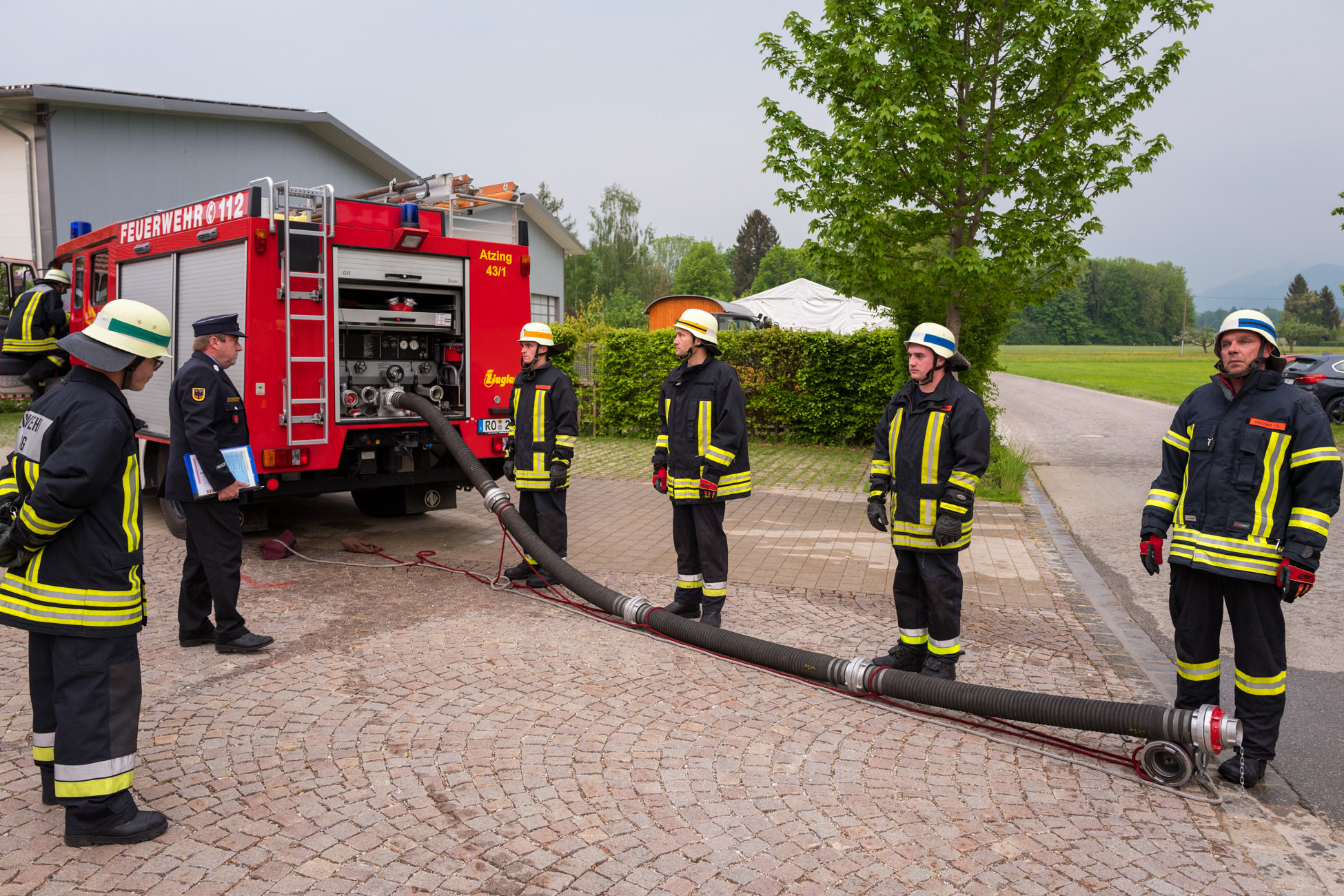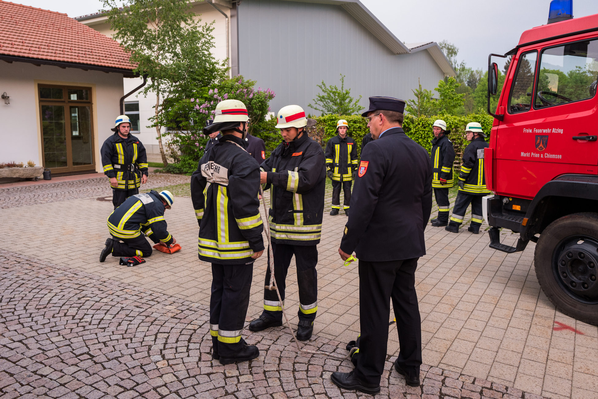 Ihre verlässliche Einsatzbereitschaft hat die Freiwillige Feuerwehr von Atzing mit dem erfolgreichen Abschluss von zwei Leistungsgruppen-Tests neuerlich unter Beweis gestellt. Eine Gruppe mit bereits längere Zeit aktiven Feuerwehrmännern unter der Leitung von Gruppenführer Florian Hamberger und eine weitere Gruppe mit jungen Nachwuchsleuten stellten sich den theoretischen Fragen (unter anderem zu Gefahrgut-Themen und Erster Hilfe) sowie praktischen Aufgaben wie Knoten-Technik und Leitungsaufbau. Die Prüfung nach vorher fünf Vorbereitungsübungen nahmen Kreisbrandinspektor Franz Hochhäuser aus Prutting sowie die Kreisbrandmeister Franz Hügel aus Bernau und Rainer Tippel aus Leonhardspfunzen vor. Für beide Gruppen konnten sie ein positives Ergebnis vermelden und die Leistungsabzeichen aushändigen. Diese erhielten mit der Endstufen-Fassung „Gold-Rot“ die drei Feuerwehrmänner Andreas Schweiger, Robert Höhensteiger und Leonhard Jell. Unter den Empfängern des Abzeichens in Bronze war erstmals mit Anna Boggusch ein junges Mädchen. Bei der Abschlussbesprechung am Vereinshaus bedankten sich Feuerwehr-Vorstand Martin Loferer und Kommandant Paul Huber bei ihren Leuten für deren Ausbildungsbereitschaft und kameradschaftlichen Zusammenhalt. KBI Franz Hochhäuser dankte der Atzinger Feuerwehr noch für deren Unterstützung bei zukünftigen Schaum-Übungen auswärtiger Feuerwehren auf dem Atzinger Gelände. Im Florianstüberl sagte dann Dritter Bürgermeister Alfred Schelhas: „Meine Gratulation gilt dem guten Ergebnis und mein Respekt gilt dem wichtigen Dienst, den ihr alle leistet“. Zum Dank in Worten gab es dann noch eine Einladung zu einem Schnitzel-Essen, das vom Dorfwirt Stocker geliefert und von der Gemeinde Prien spendiert wurde. Die nächste öffentliche Veranstaltung der Feuerwehr Atzing ist am Pfingstmontag, 21. Mai der musikalische Frühschoppen mit der Blaskapelle Wildenwart vor dem Feuerwehrhaus.
